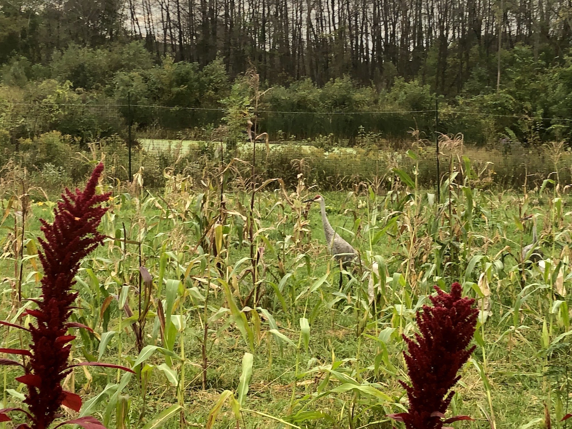 Above: Sandhill Cranes enjoying the bounty of Three Sisters Garden on September 27, 2019 (61°).