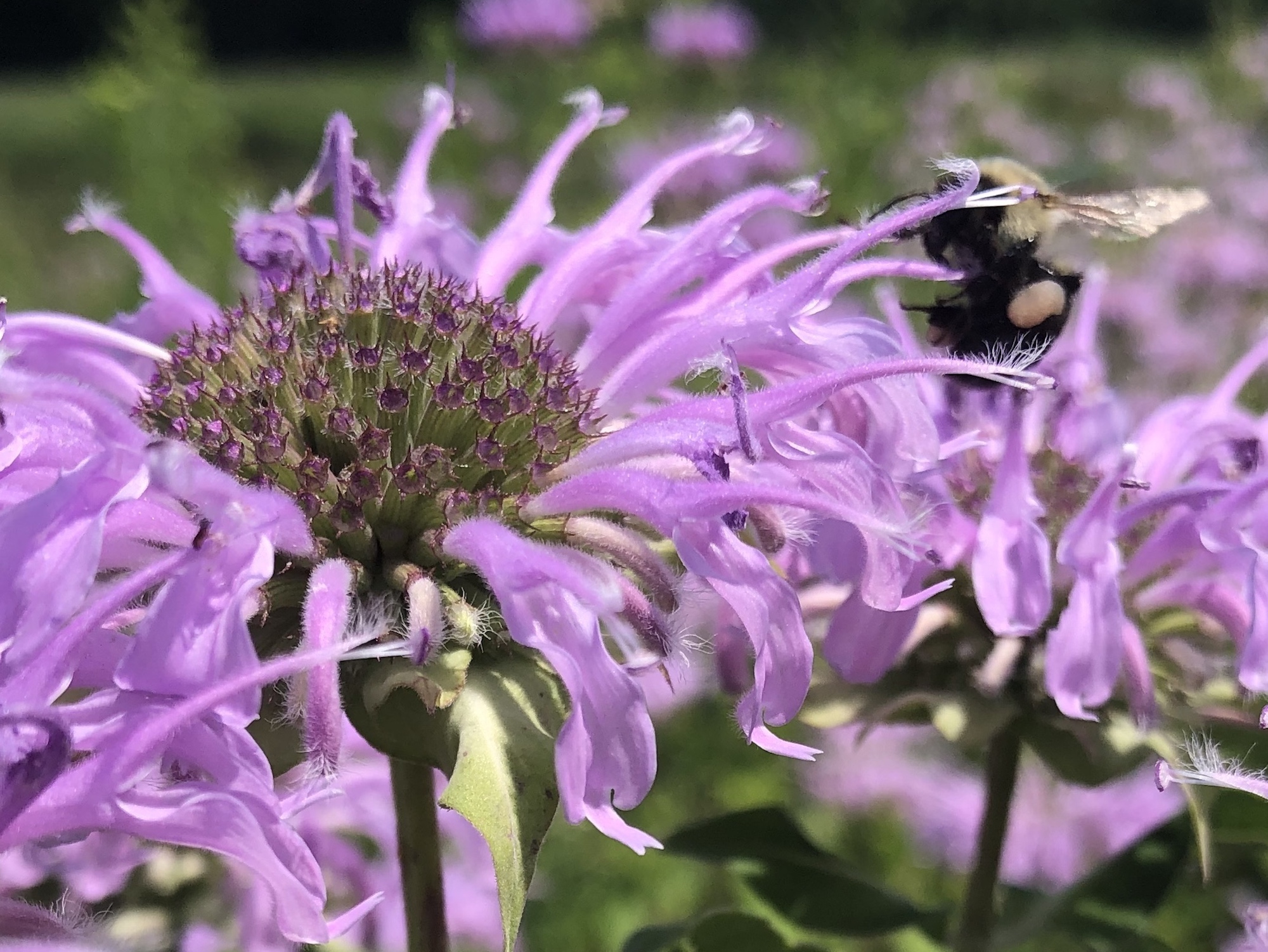Above: Bumblebee on Wild Bergamot on bank of Marion Dunn Pond (7/1/20)