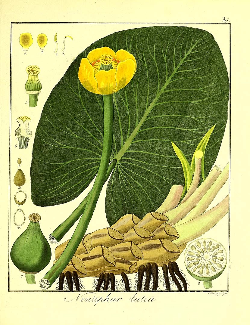 Above: Botanical illustration of Nuphar lutea from Friedrich Gottlob’s 1813 book Plants Used in Medicine.