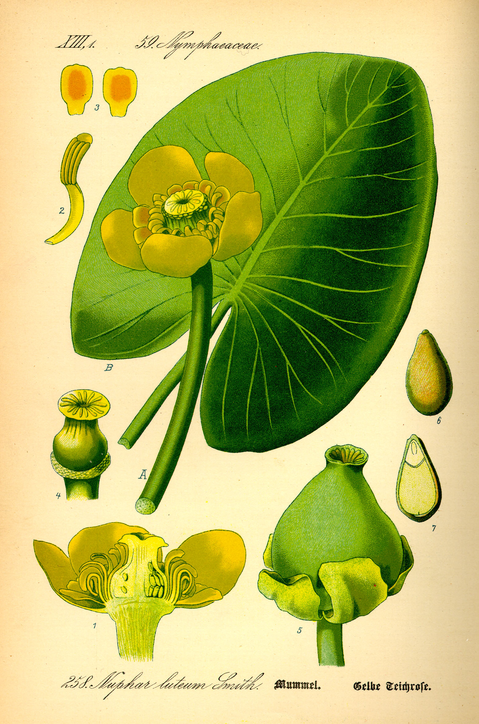 Above: Bull-head pond-lily (Nuphar lutea) botanical illustration by Jacob Sturm circa 1901.