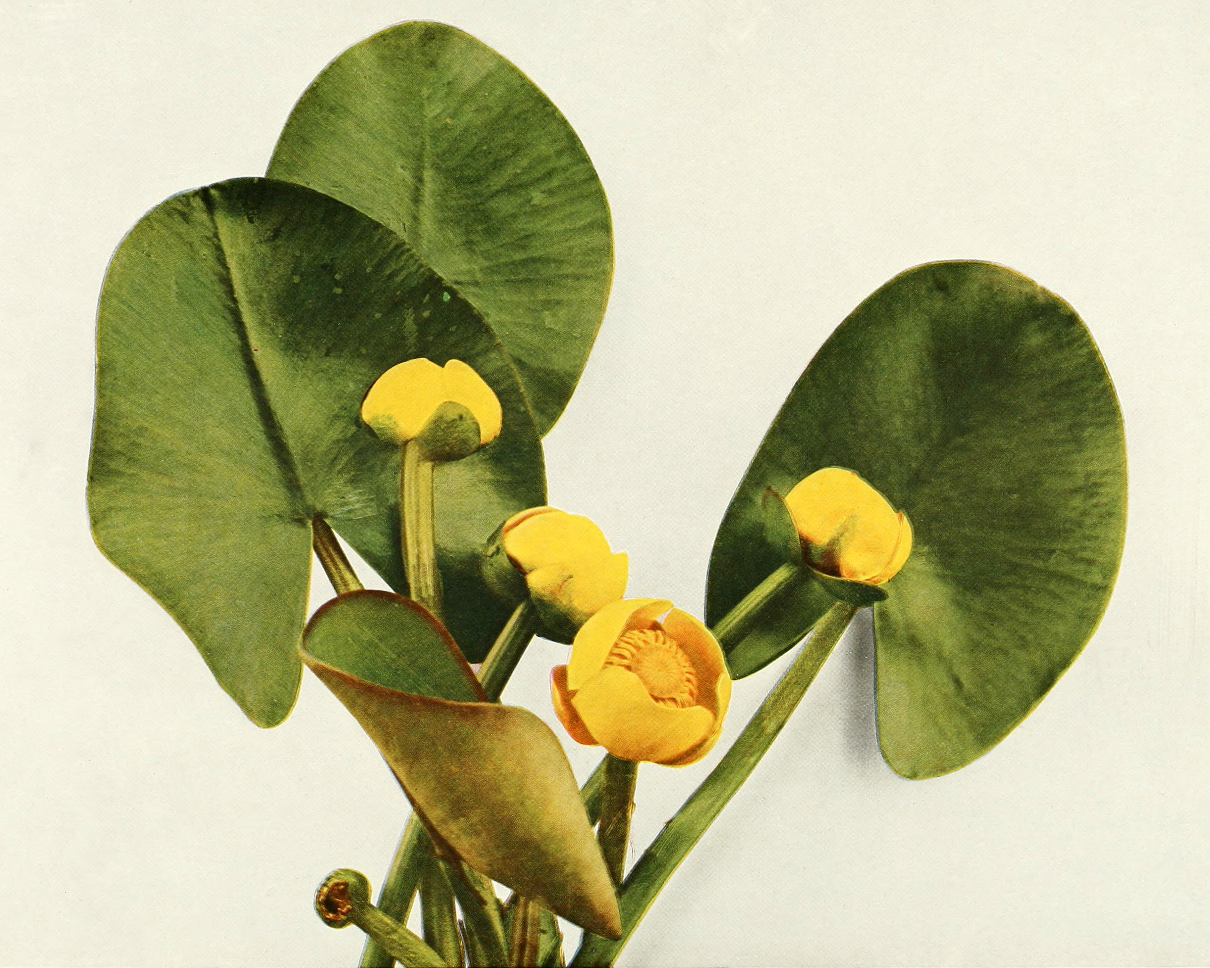 Above: Broad-leaved yellow pond-lily also called Spatterdock (Nuphar advena) from Wild Flowers of New York circa 1918.