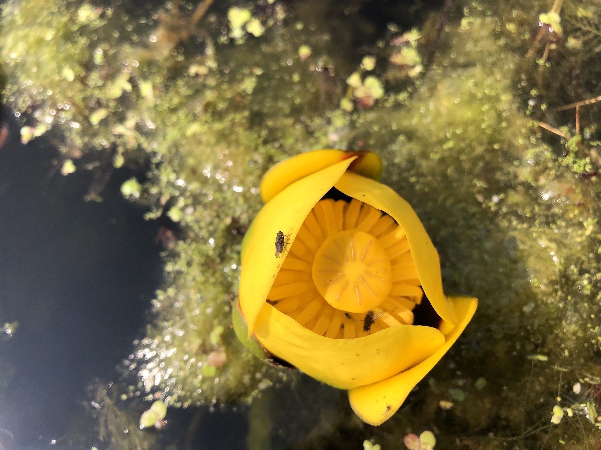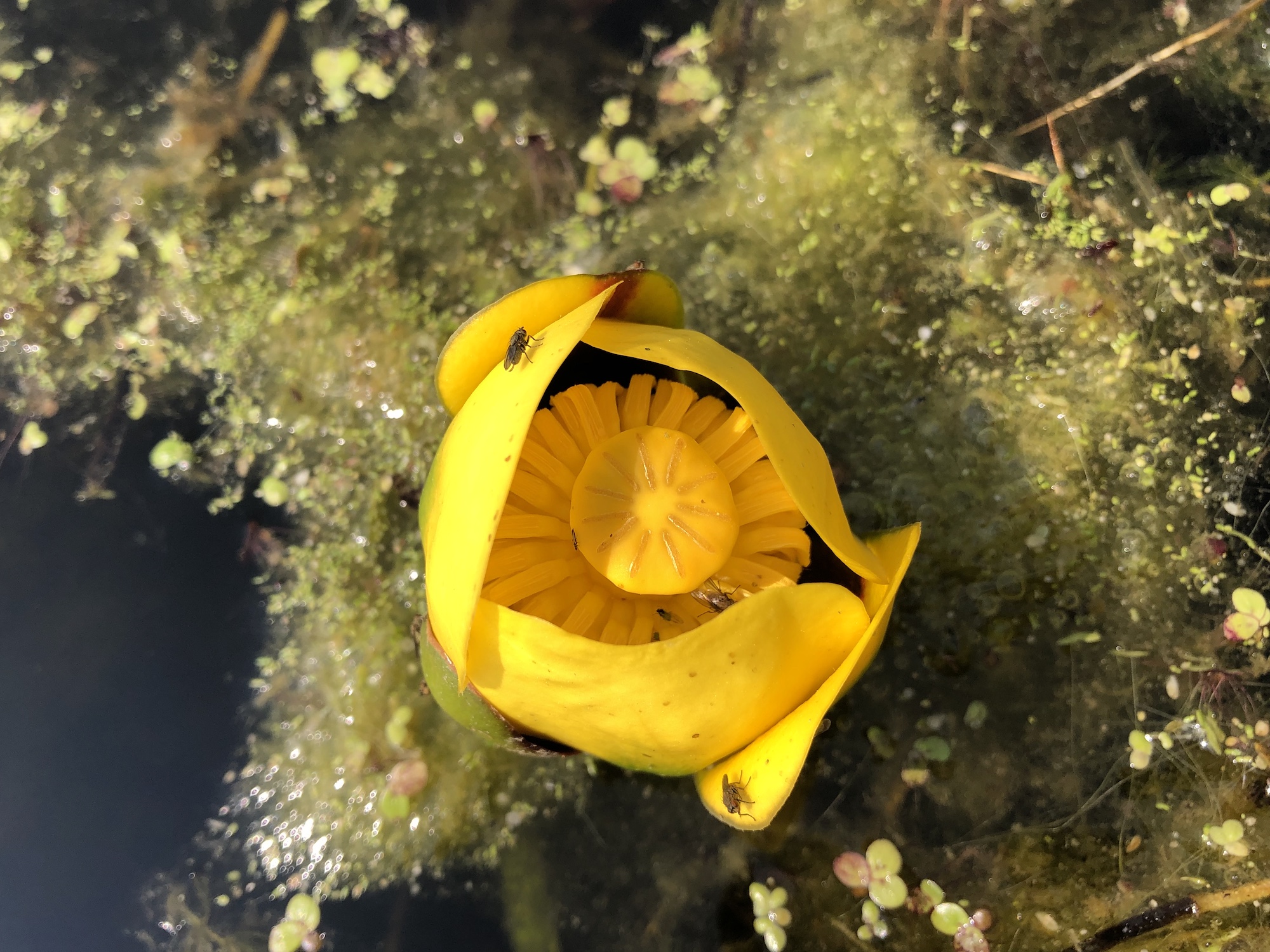 Although the flowers I photographed were all sitting on the surface of the water, other Yellow Pond-lily flowers farther off shore are a 3-5 inches above the water on stout stems.