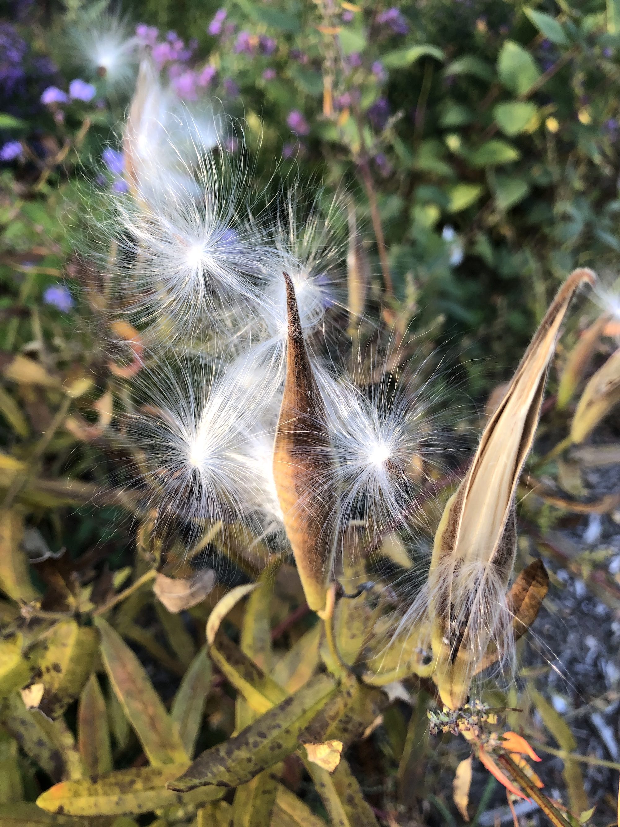 Above: Butterfly Milkweed seed pod in Thoreau Rain Garden. (12/12/21).