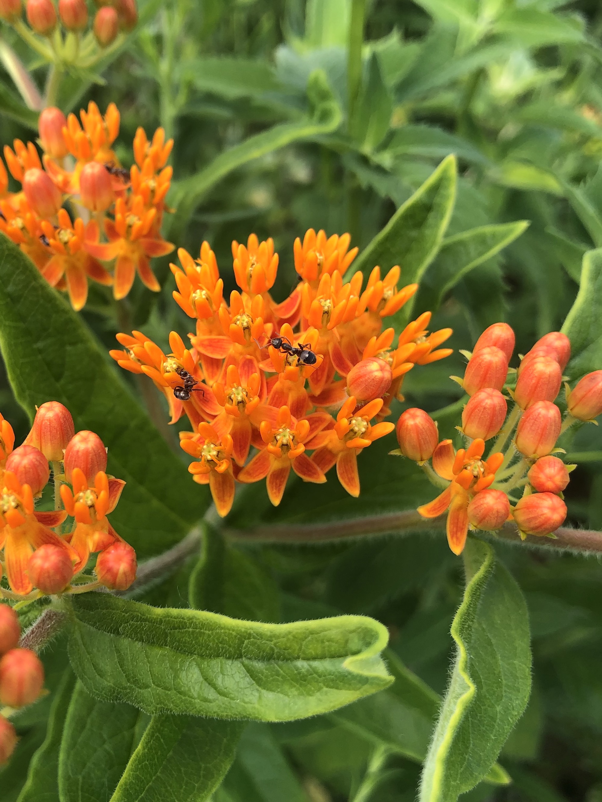 Above: Butterfly Milkweed in Thoreau Rain Garden in Madison, Wisconsin. (8/28/20).
