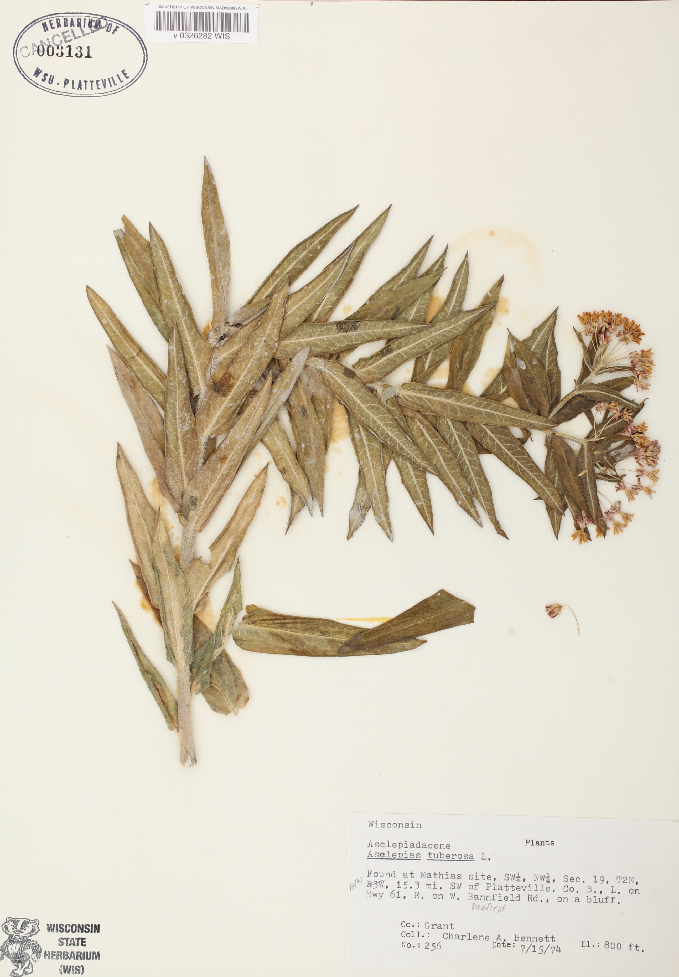 Above: Butterfly Milkweed specimen collected July 15, 1974 in Grant County near Platteville on a bluff.