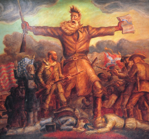 Above: Tragic Prelude by John Steuart Curry. The mural depicts John Brown in the prelude to the Civil War, during the bleeding Kansas unrest. Located in Kansas State capitol, Topeka, Kansas