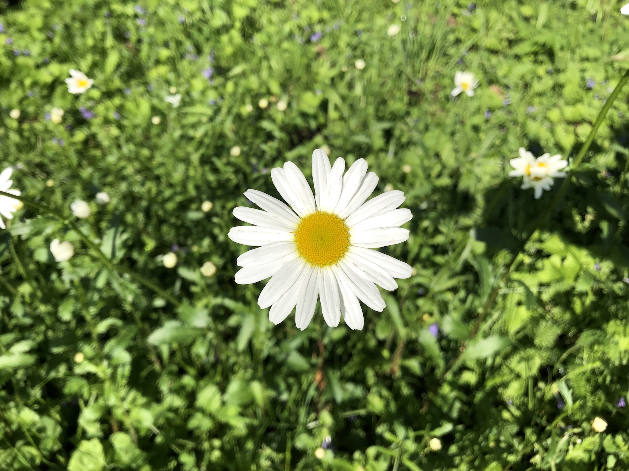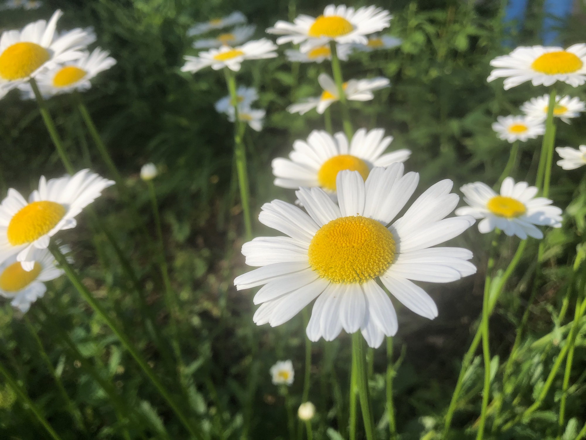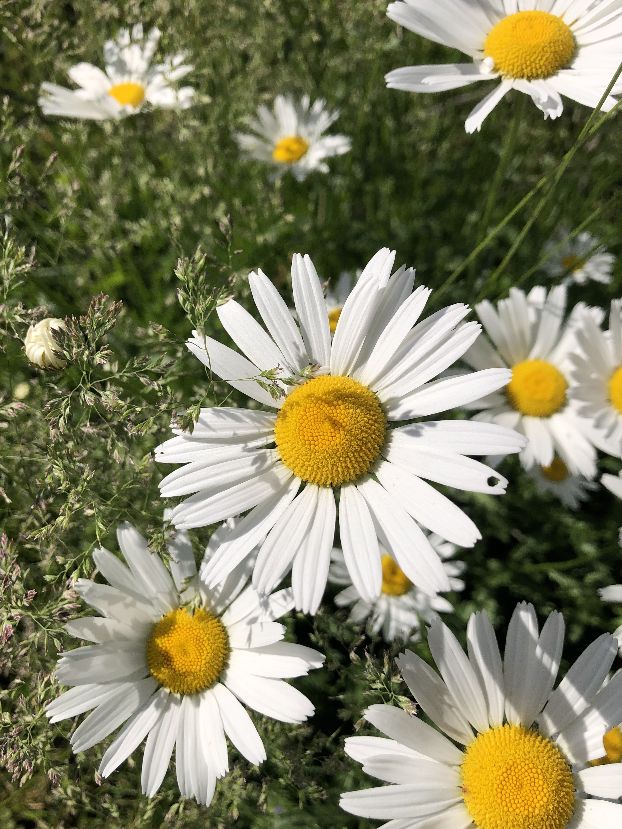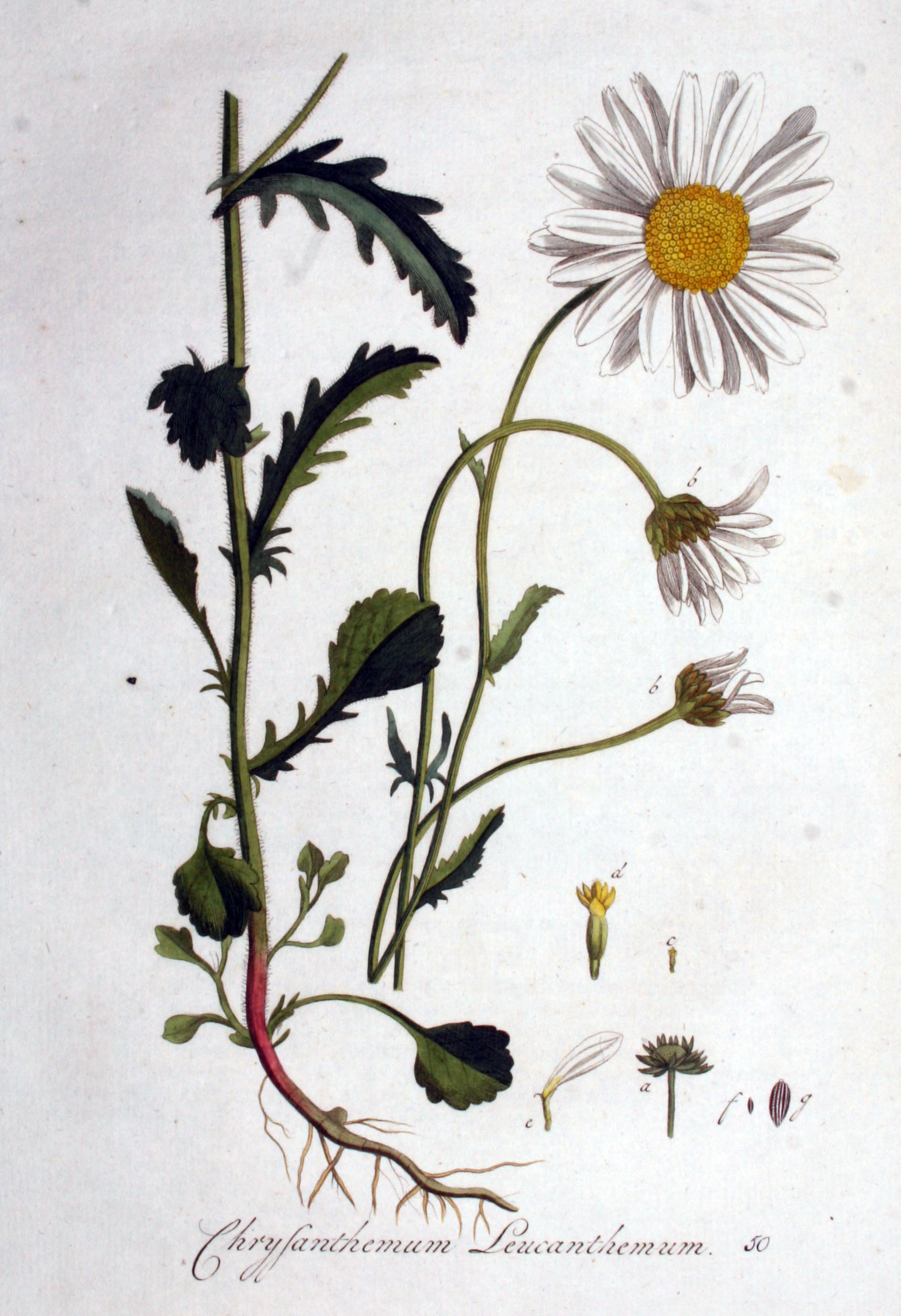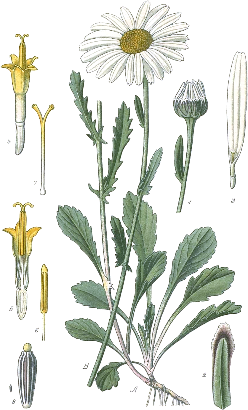 Other names include: Marguerite, field daisy, white daisy, moon daisy, moon-penny and dog daisy. Formerly known as Chrysanthemum leucanthemum.