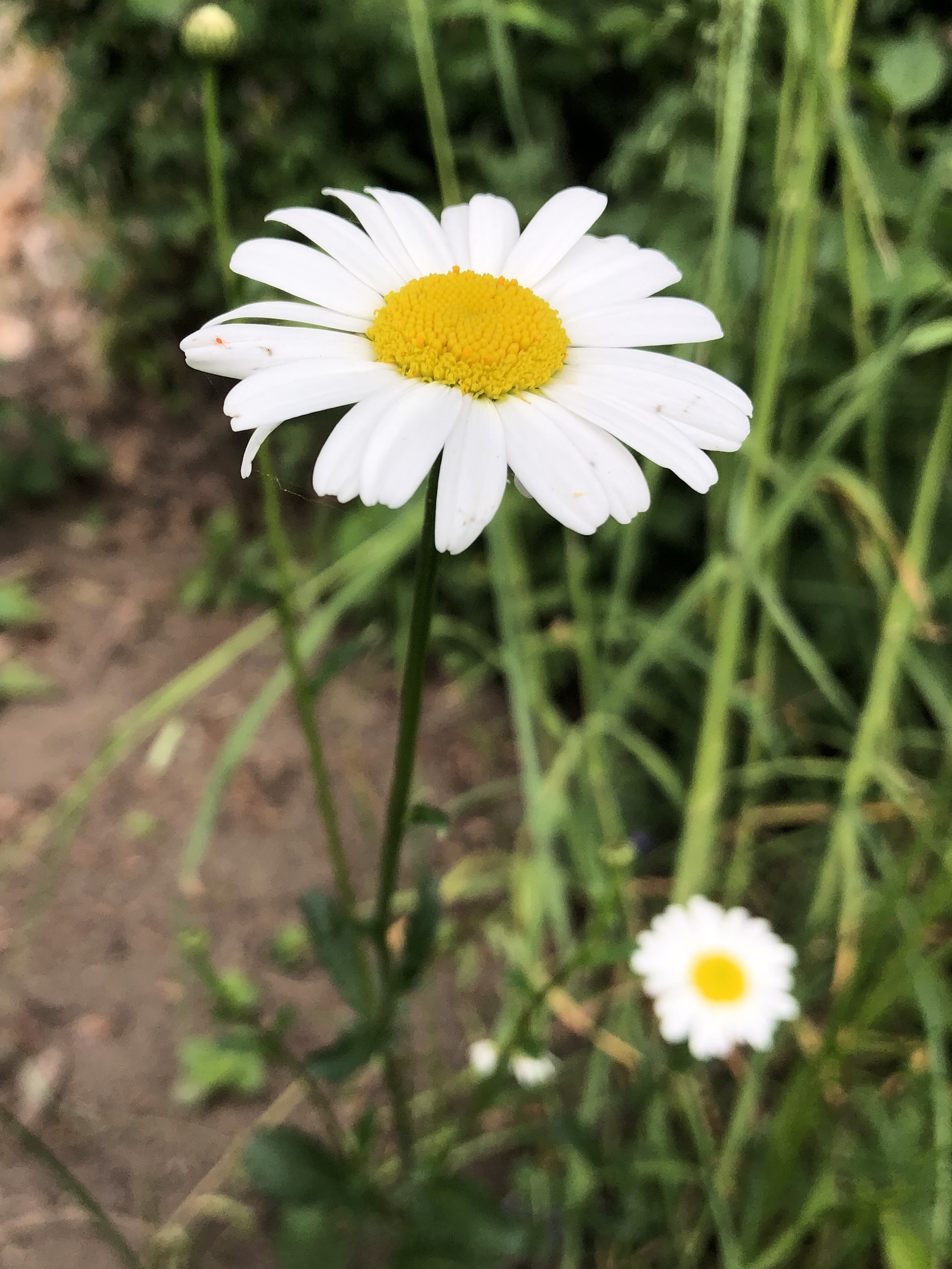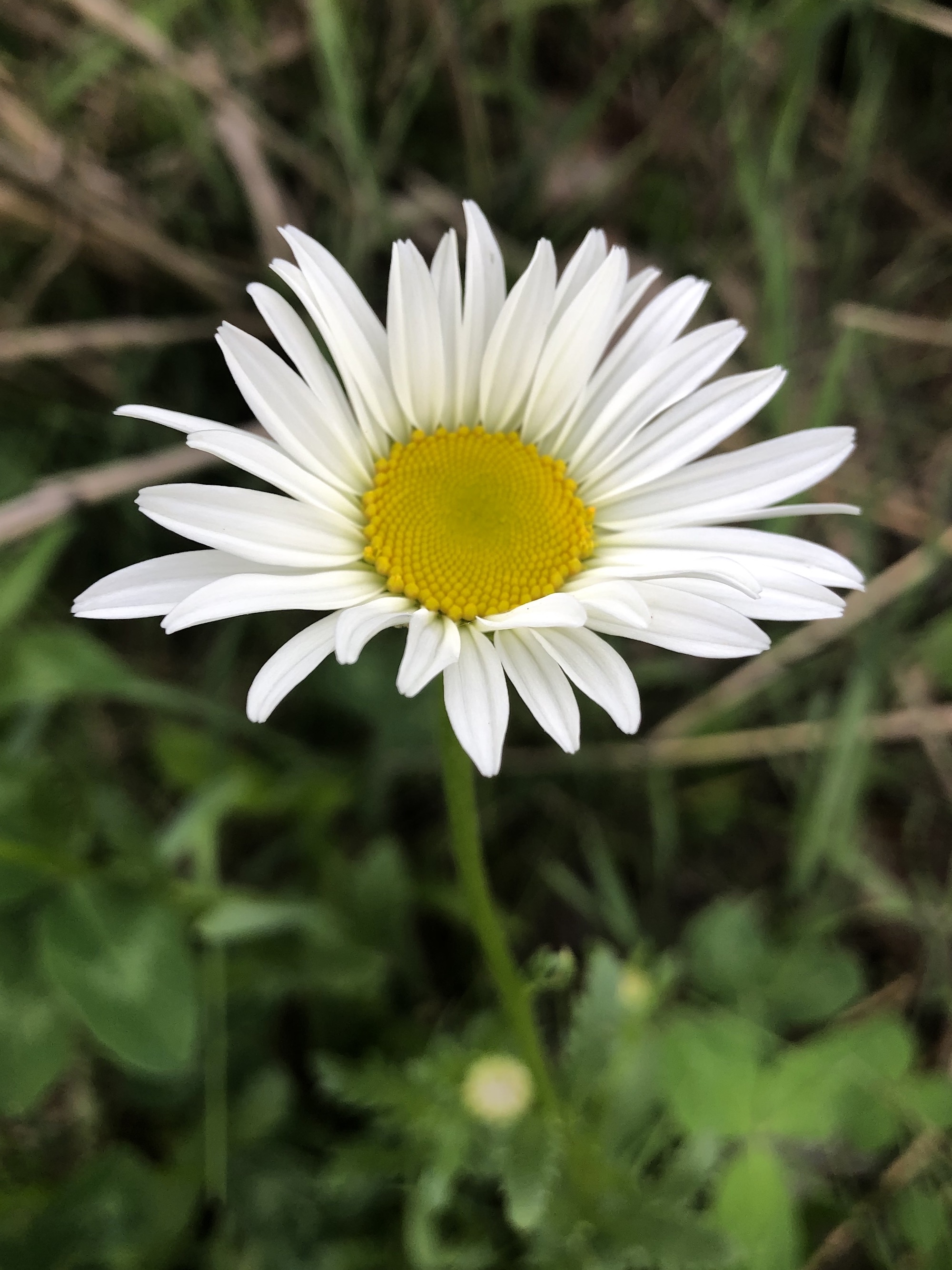 Ox-eye Daisies are in the Asteraceae family. It was brought over from Europe in the 1800s and escaped into the wild. It is an aggressive, invasive breeder, often seen along roadsides, trail edges, in old fields and other disturbed soils.