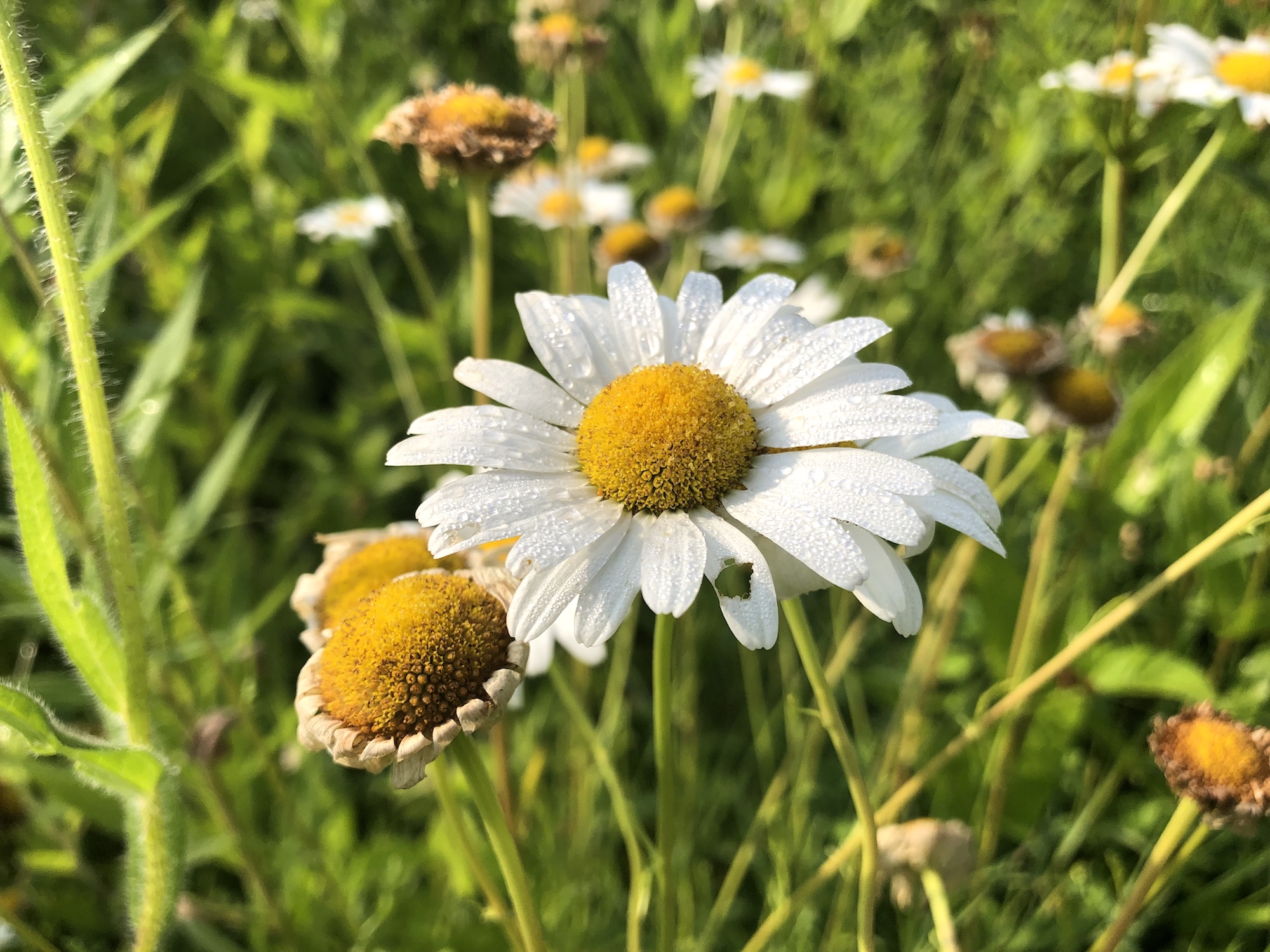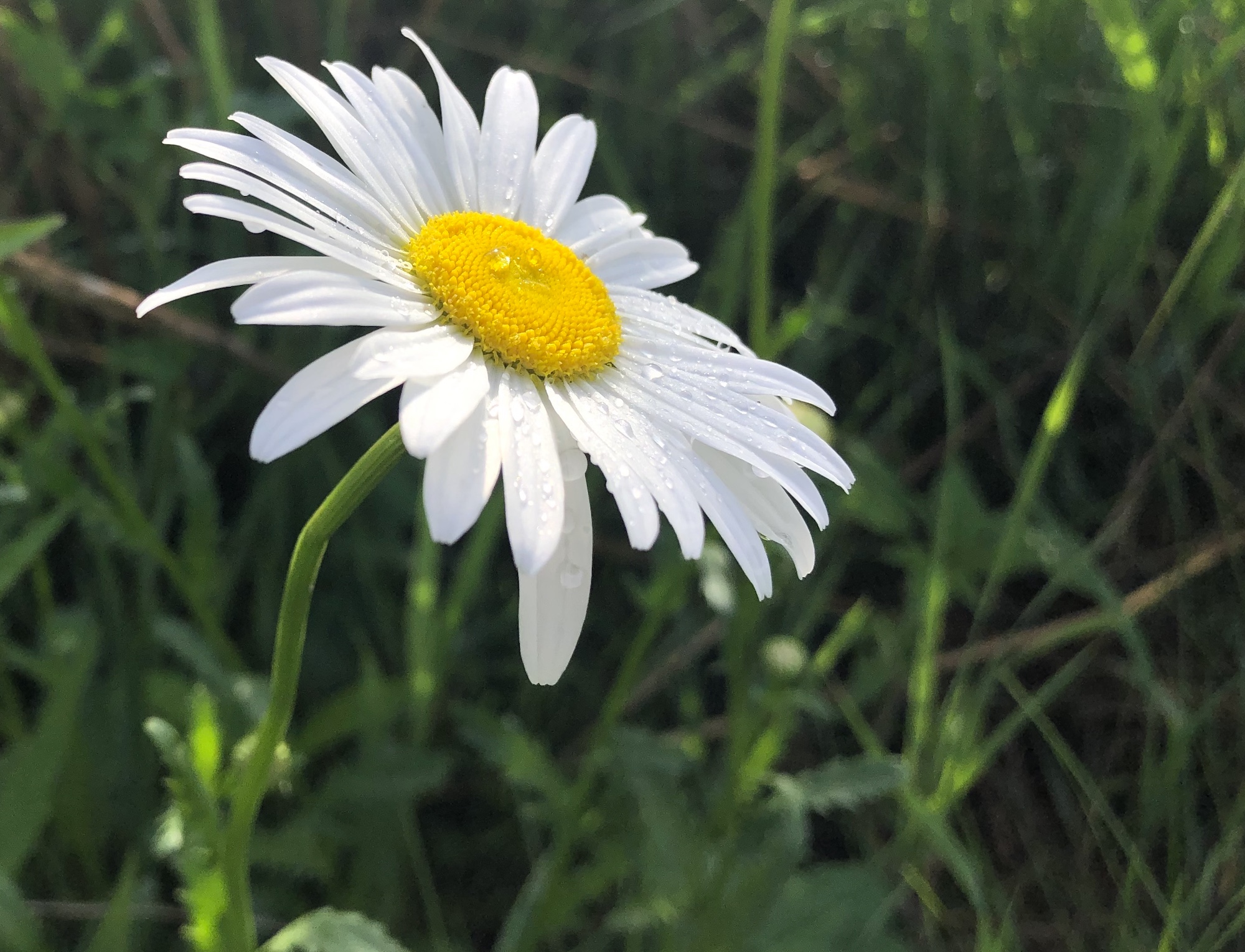 Above: Ox-eye Daisy on bank of retaining pond at the corner of Manitou Way and Nakoma Road in Madison, Wisconsin on June 2, 2019.