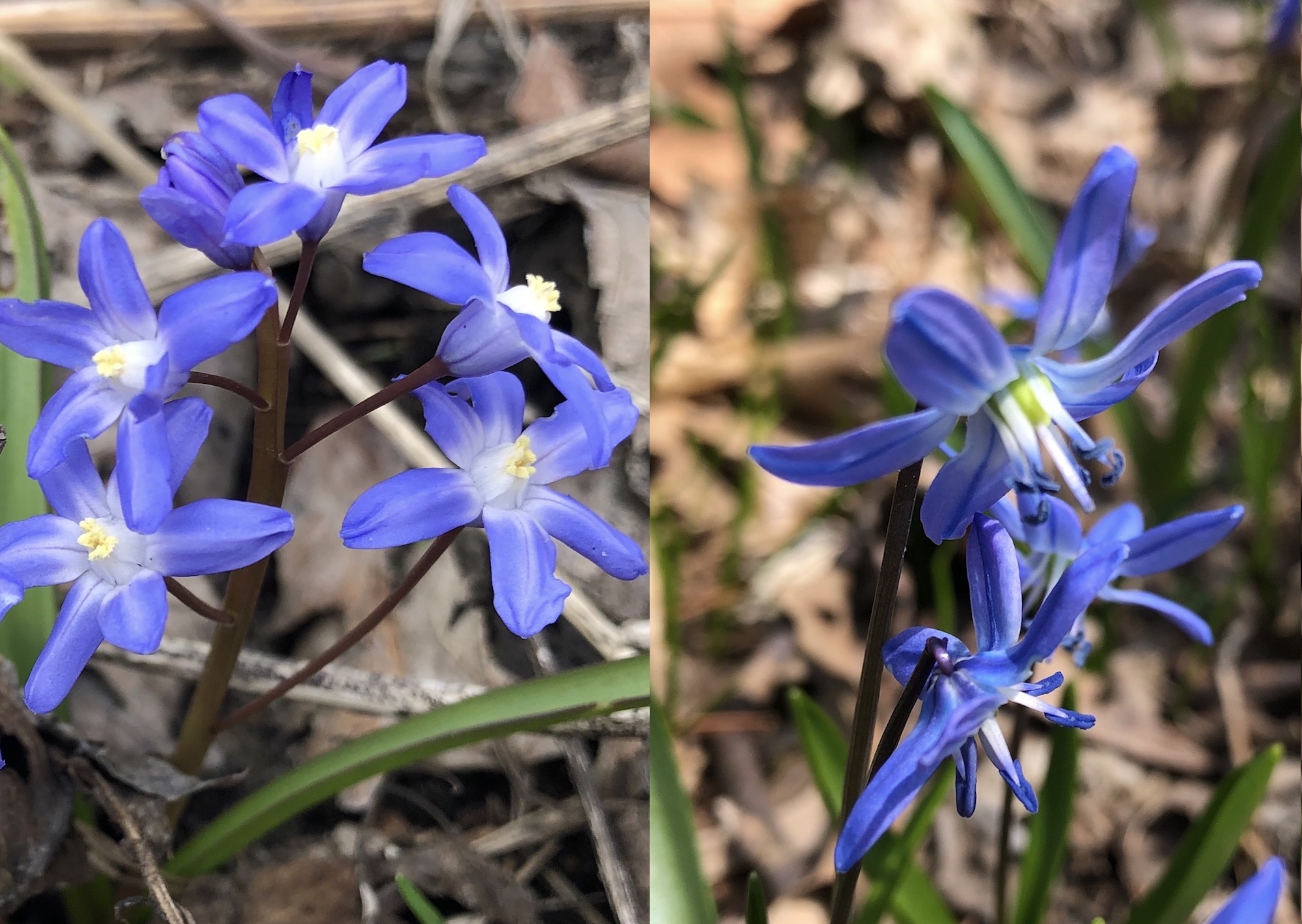 Above: Glory-of-the-Snow (on left) and Siberian Squill (on right).