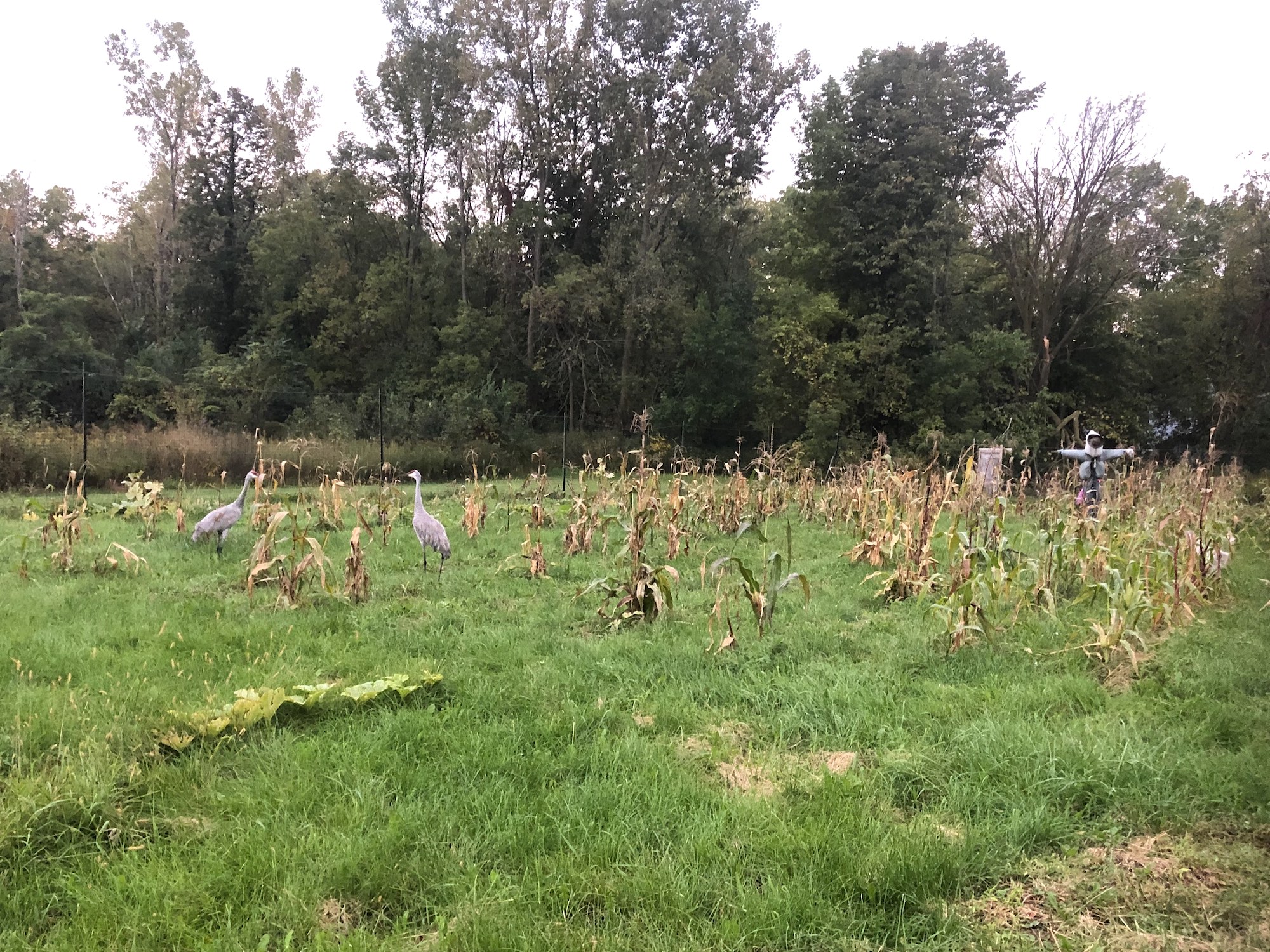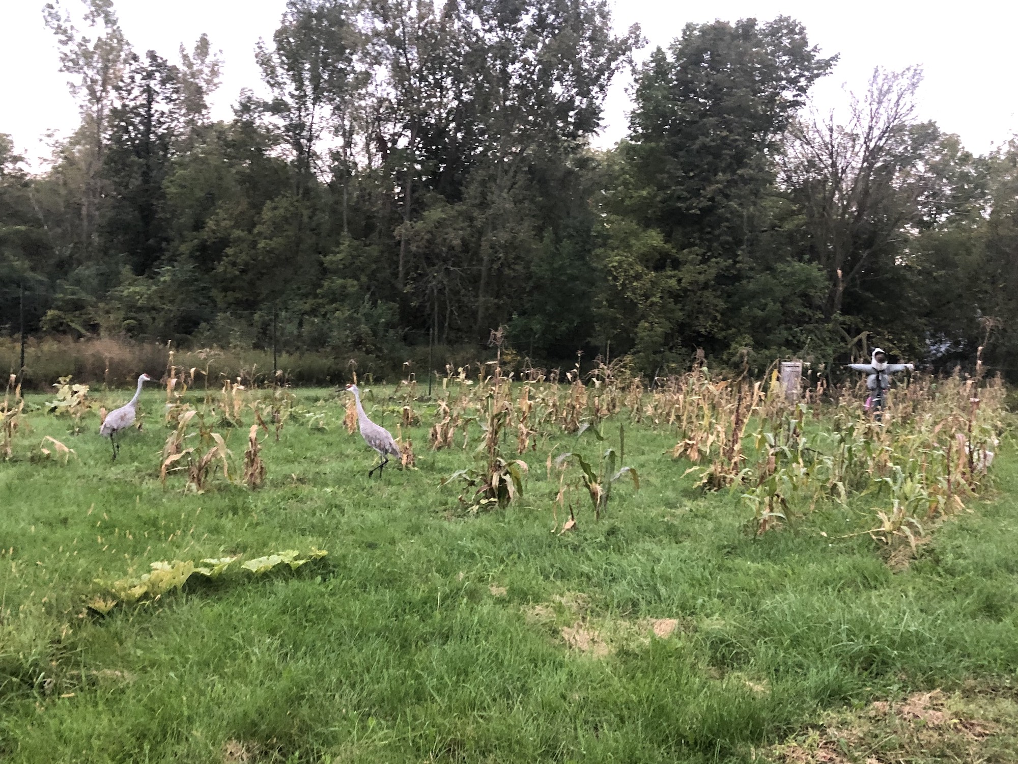 Above: Sandhill Cranes in Three Sisters Garden on October 1, 2019 (72°).