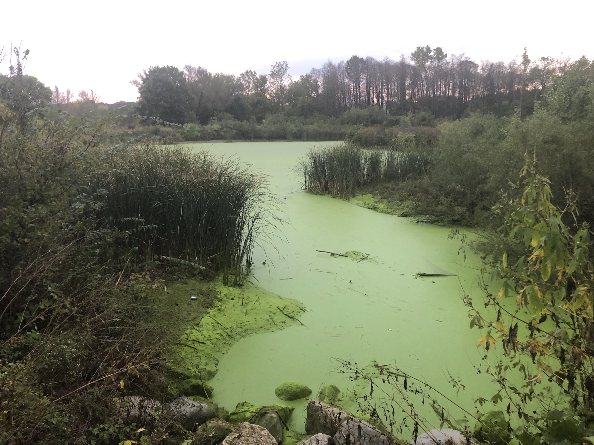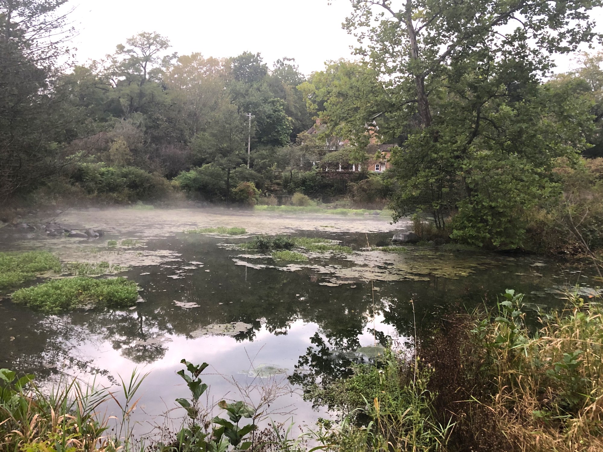 Above: Retaining pond on corner of Nakoma Road and Manitou Way on October 1, 2019 (72°).