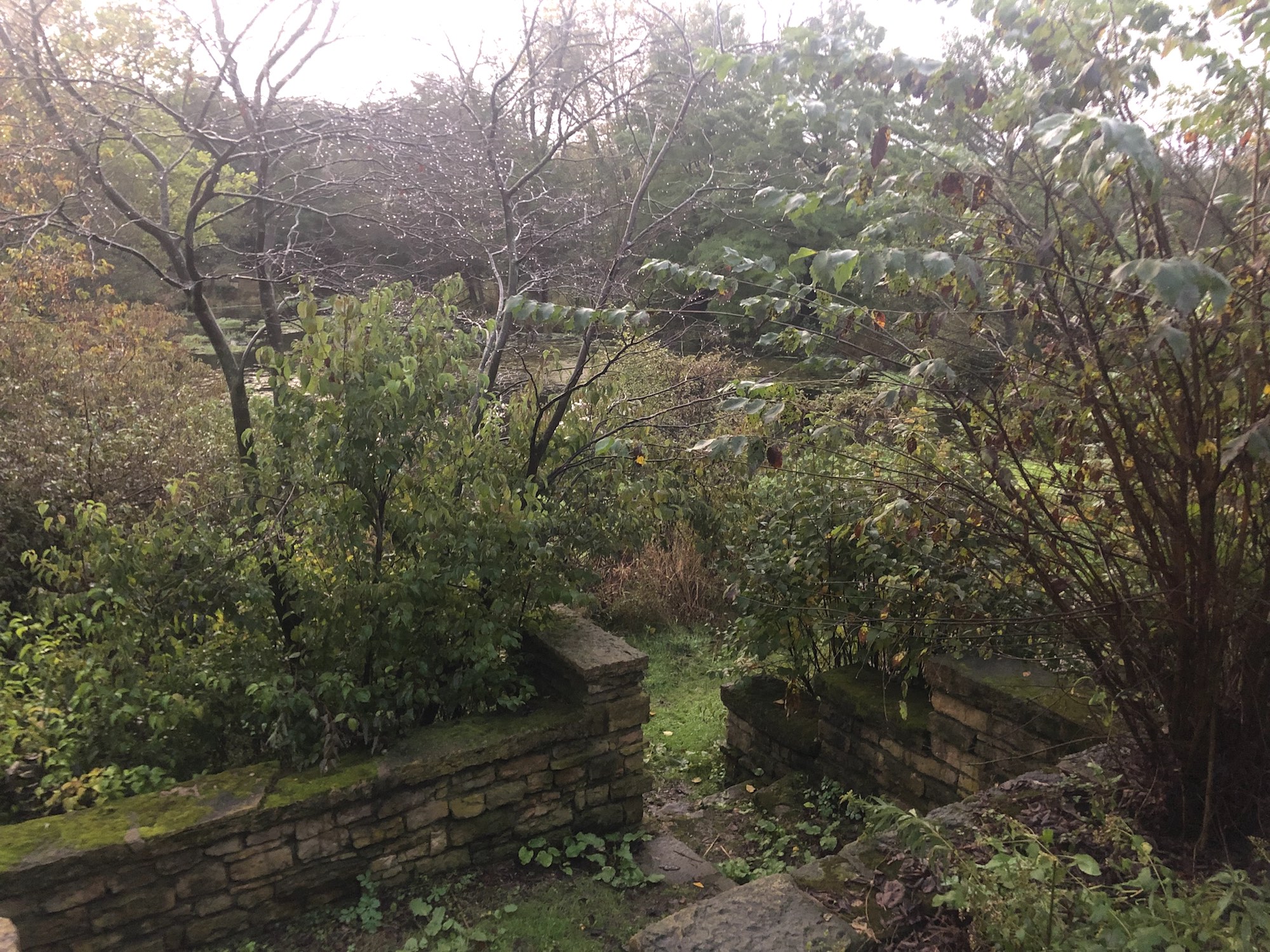 Above: Retaining pond on corner of Nakoma Road and Manitou Way on October 3, 2019 (55°).