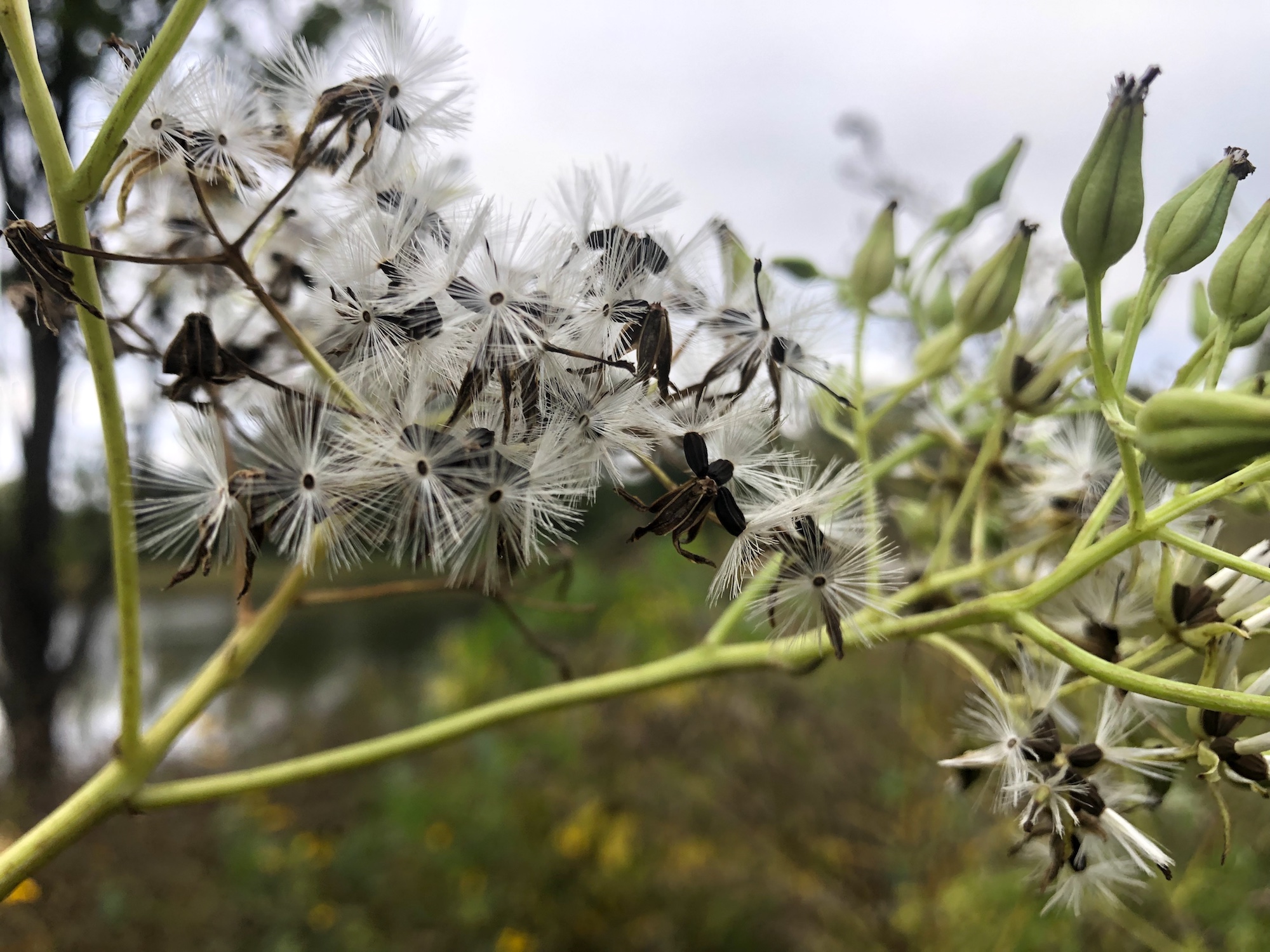 Above: Pale Indian Plantain seeds along shore of retaining pond on October 4, 2019 (46°).