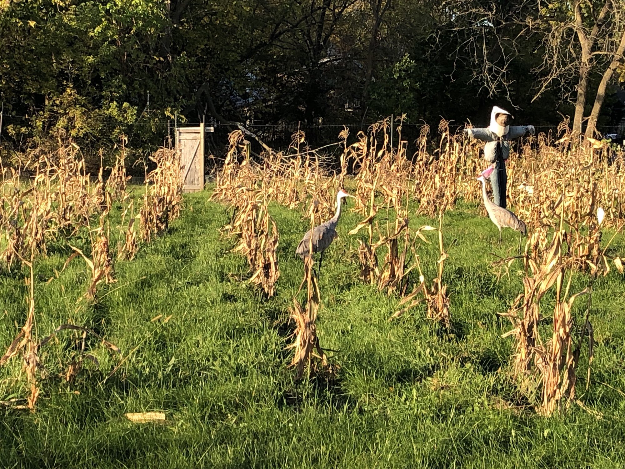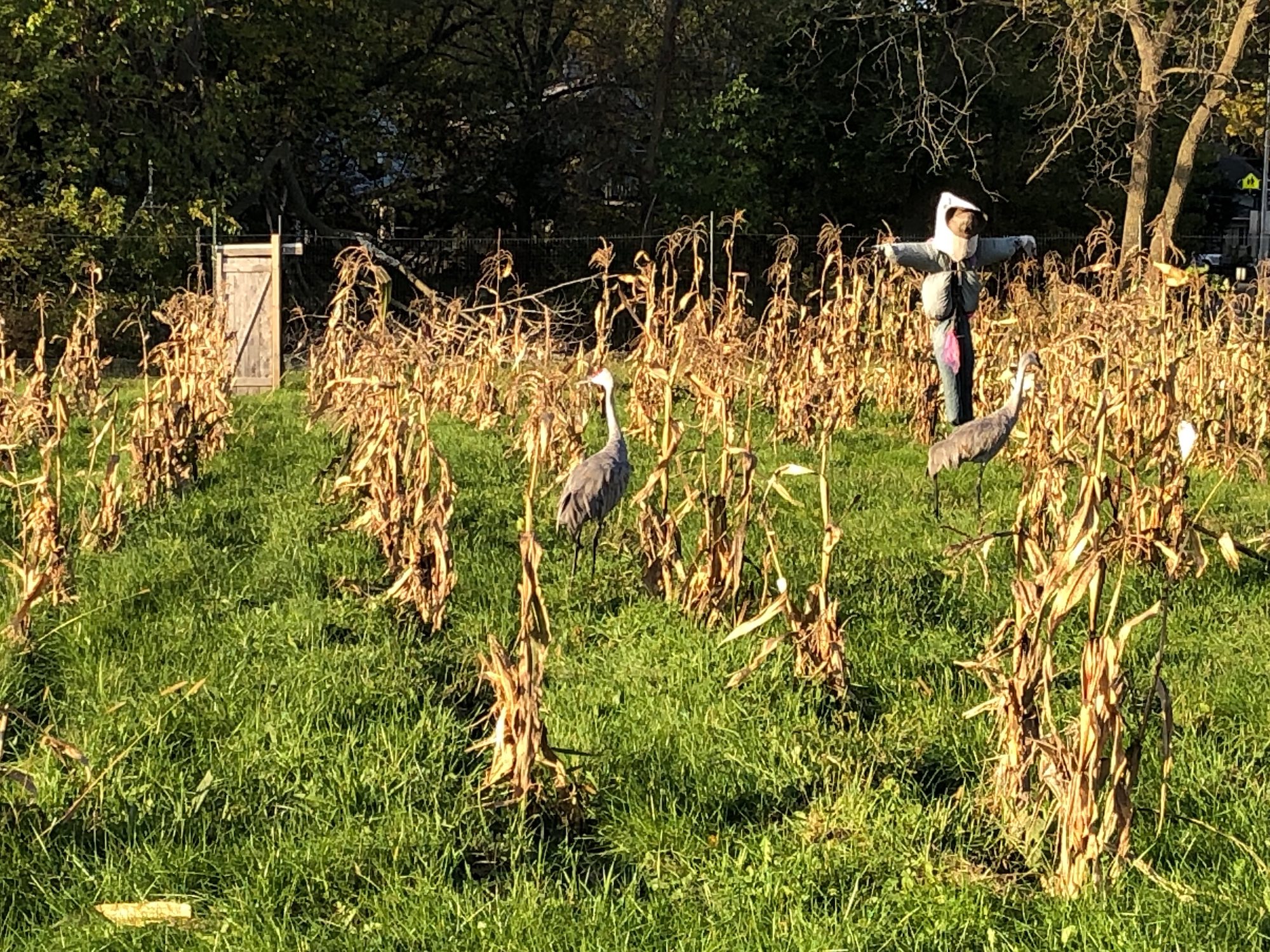 Above: Sandhill Cranes in Three Sisters Garden on October 1, 2019 (72°).