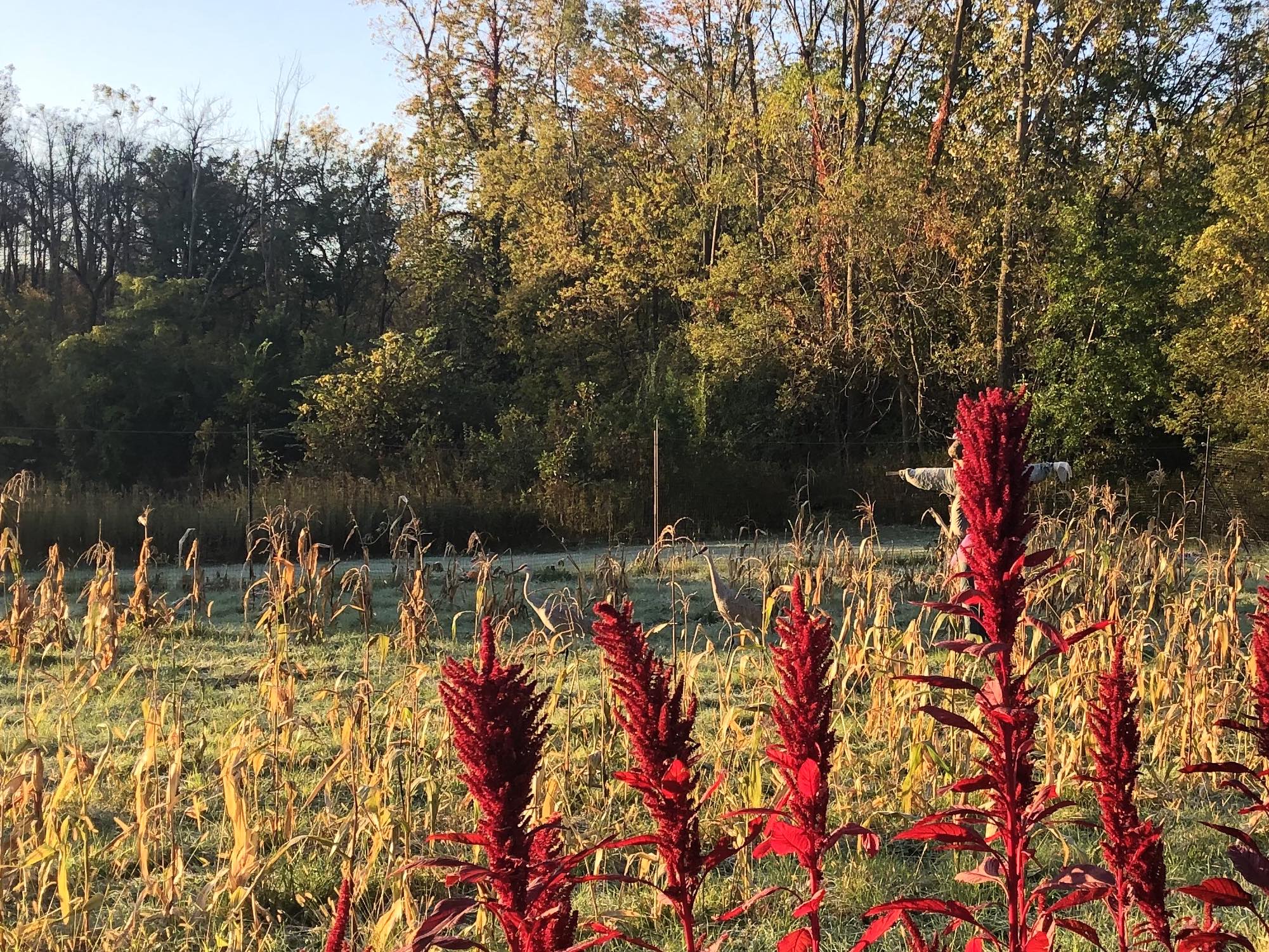 Above: Sandhill Cranes in Three Sisters Garden on October 14, 2019 35°).