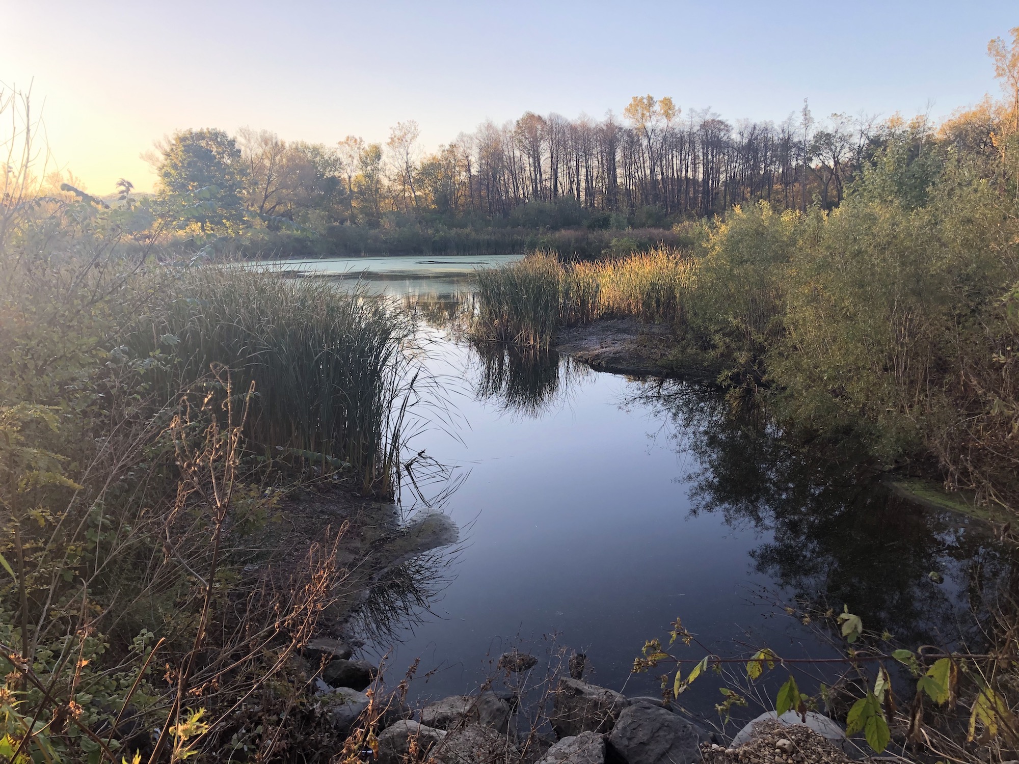 Above: Marion-Dunn Retaining Pond on October 14, 2019 (35°).