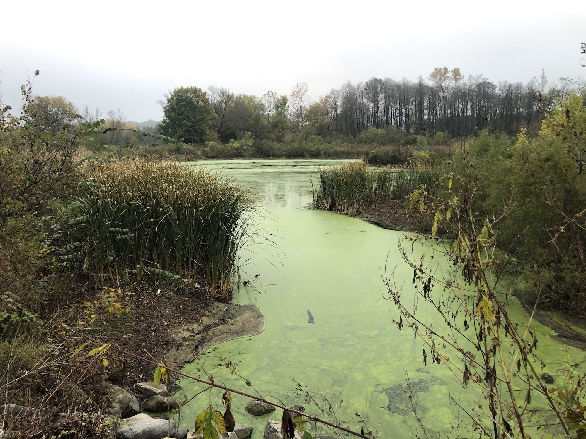 Above: Retaining pond on corner of Nakoma Road and Manitou Way on October 20, 2019 (49°).
