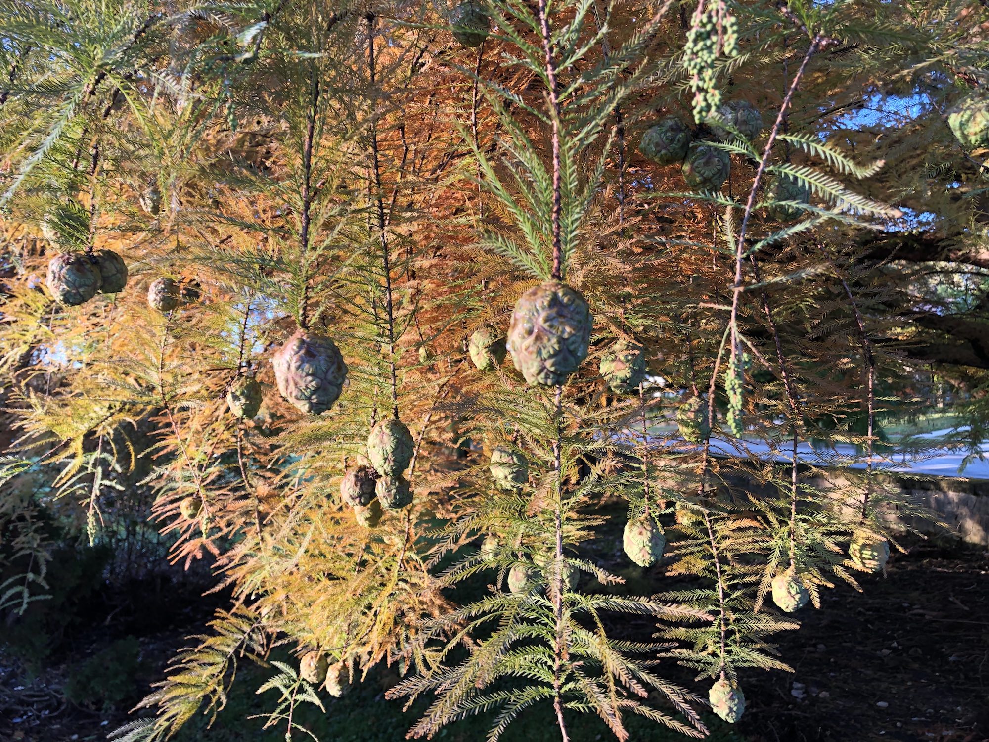 Above: Bald Cypress in UW Arboretum's Viburnum Garden off of Manitou Way on October 24, 2019 (38°).