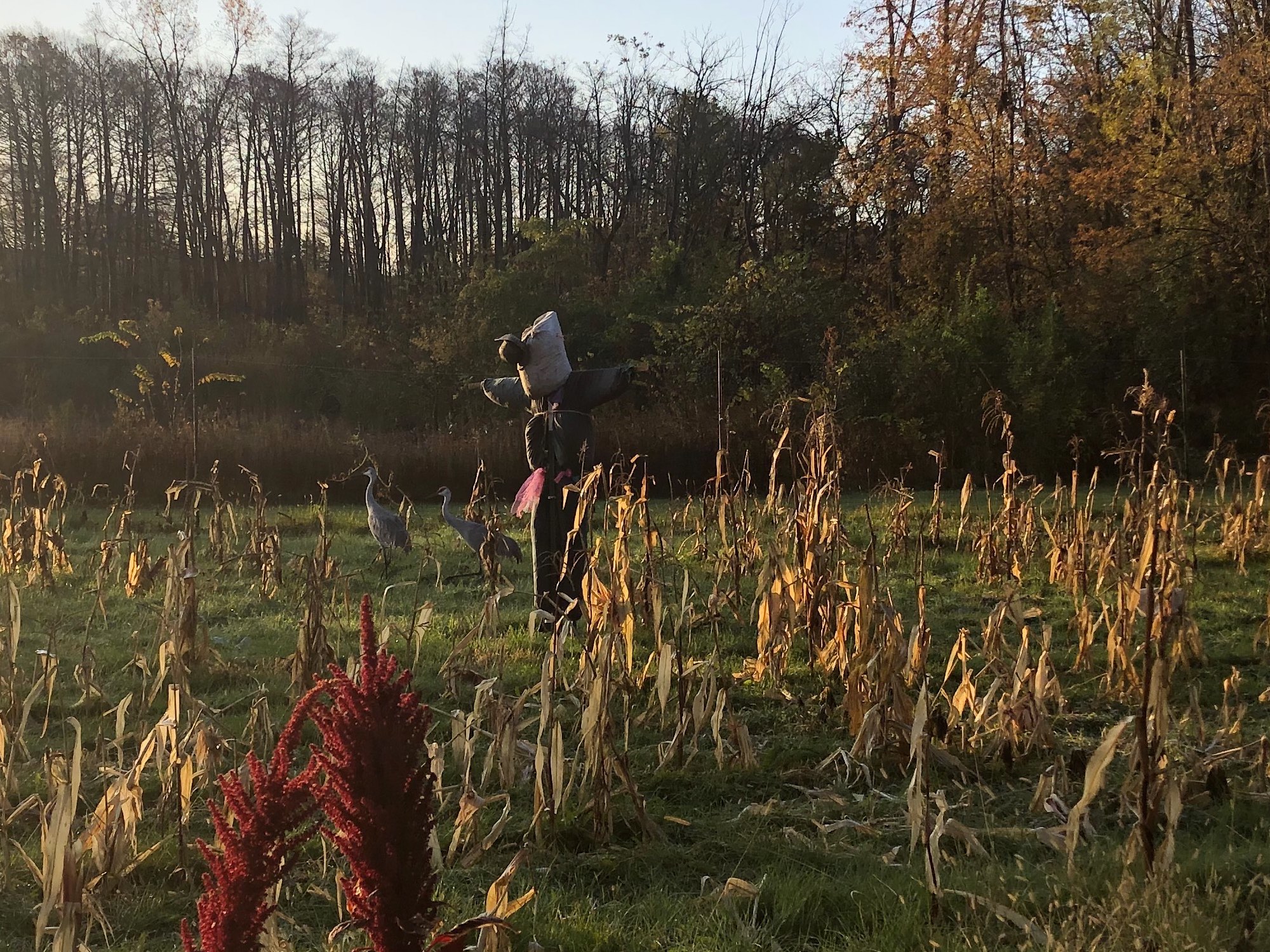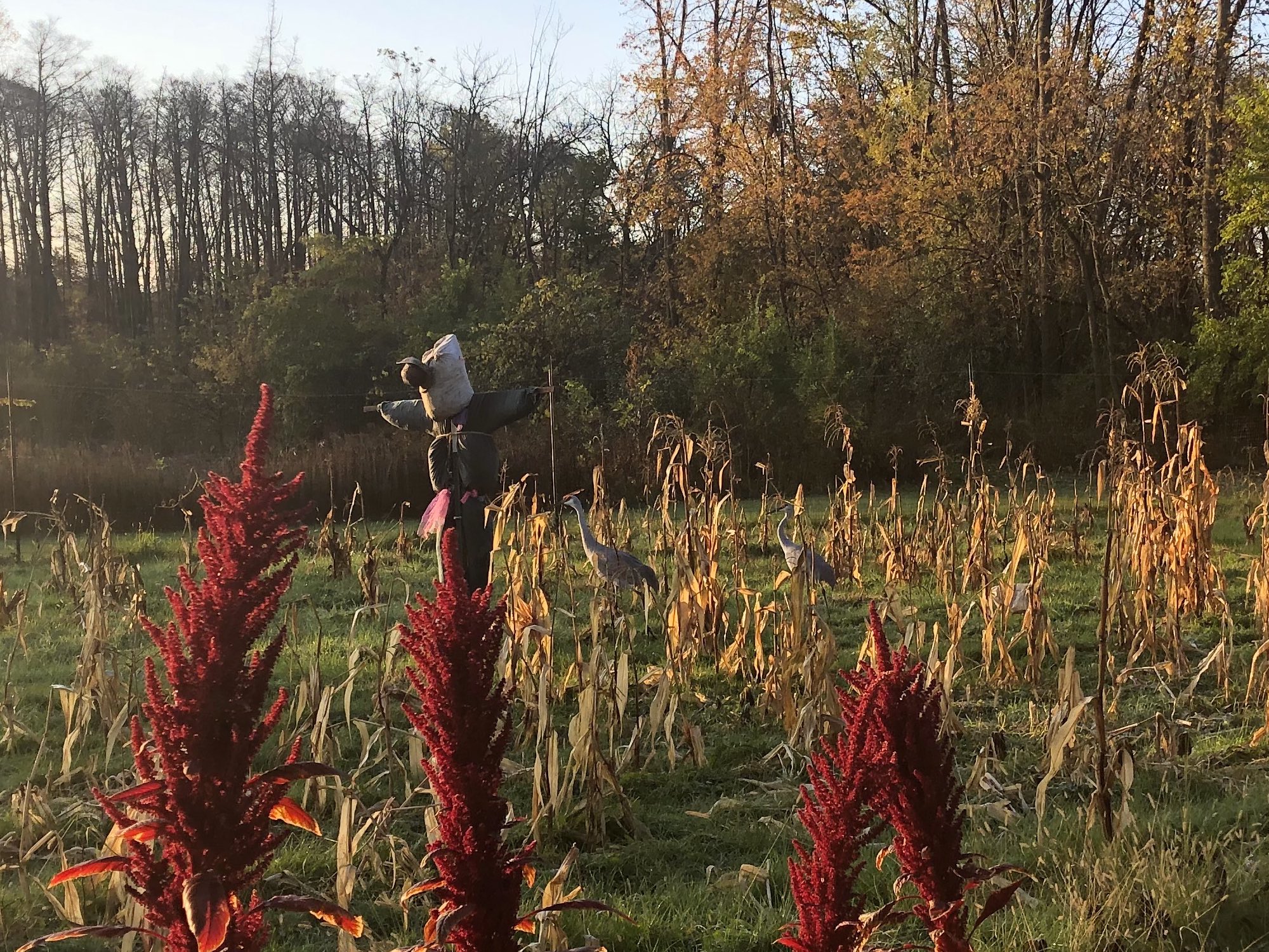 Above: Two Sandhill Cranes in Three Sisters Garden on October 24, 2019. (38°)