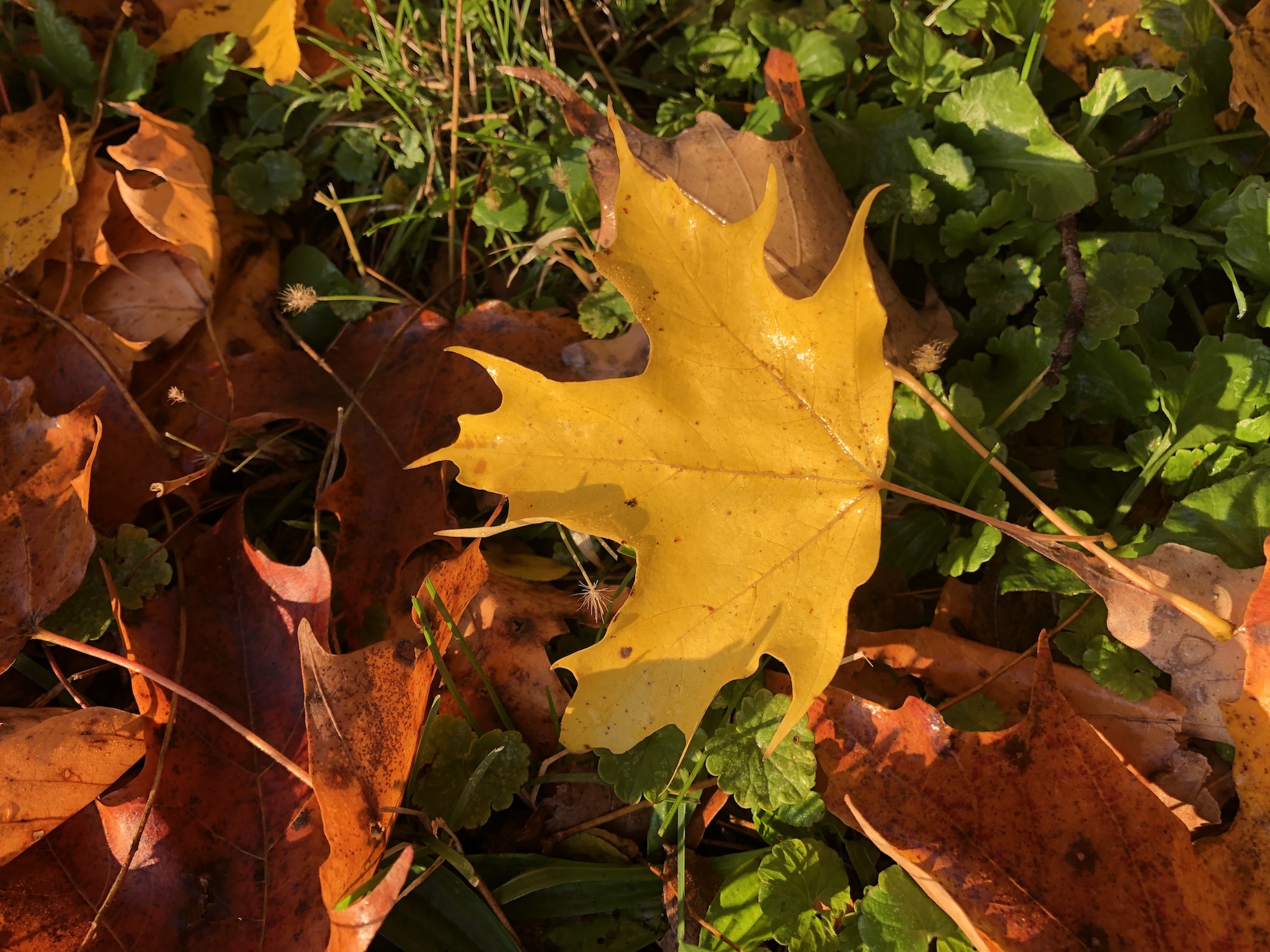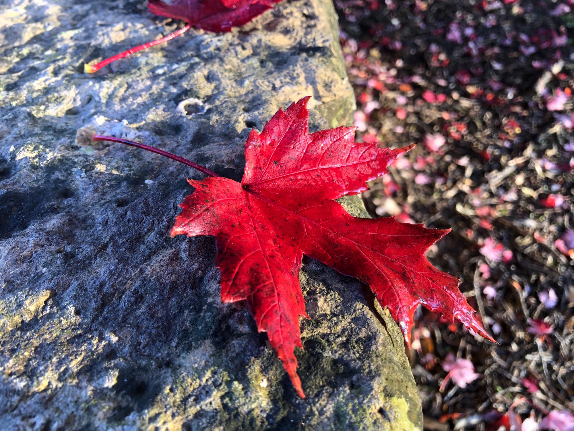 Above: Sugar Maple leaf along Manitou Way on October 24, 2019 (38°).
