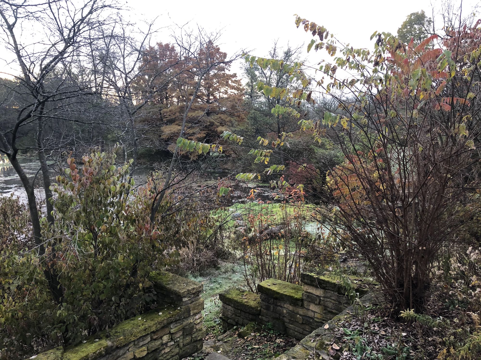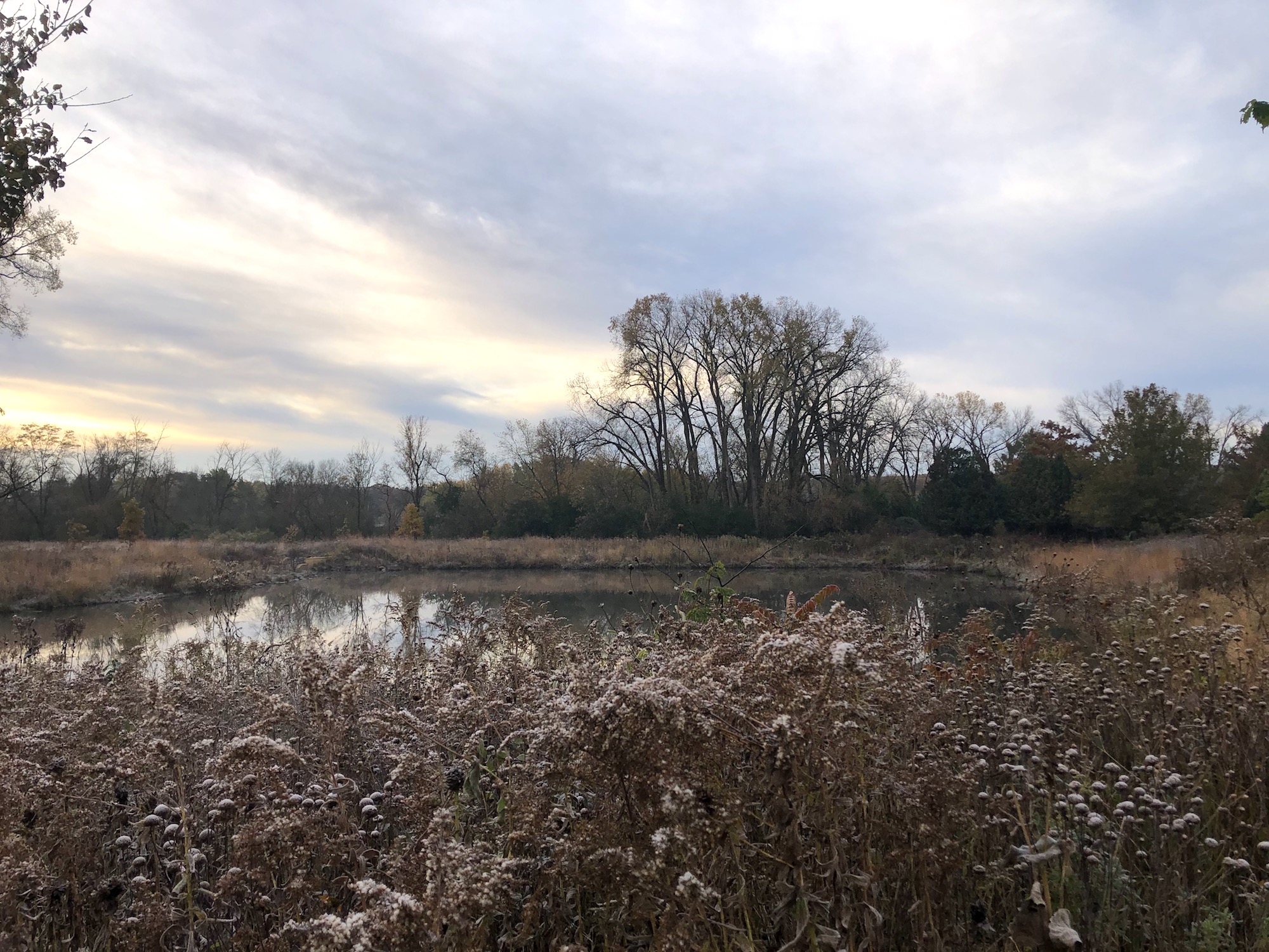 Above: Retaining pond on corner of Nakoma Road and Manitou Way on October 26, 2019 (33°).
