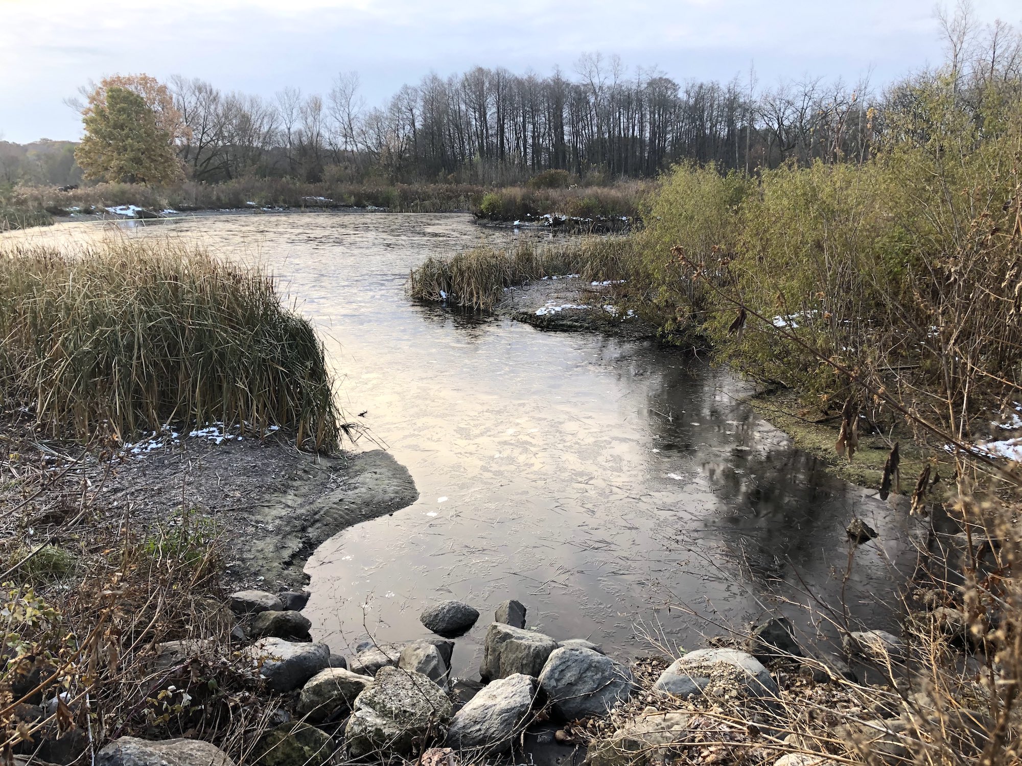 Above: Marion-Dunn Retaining Pond on November 3, 2019. (31°).