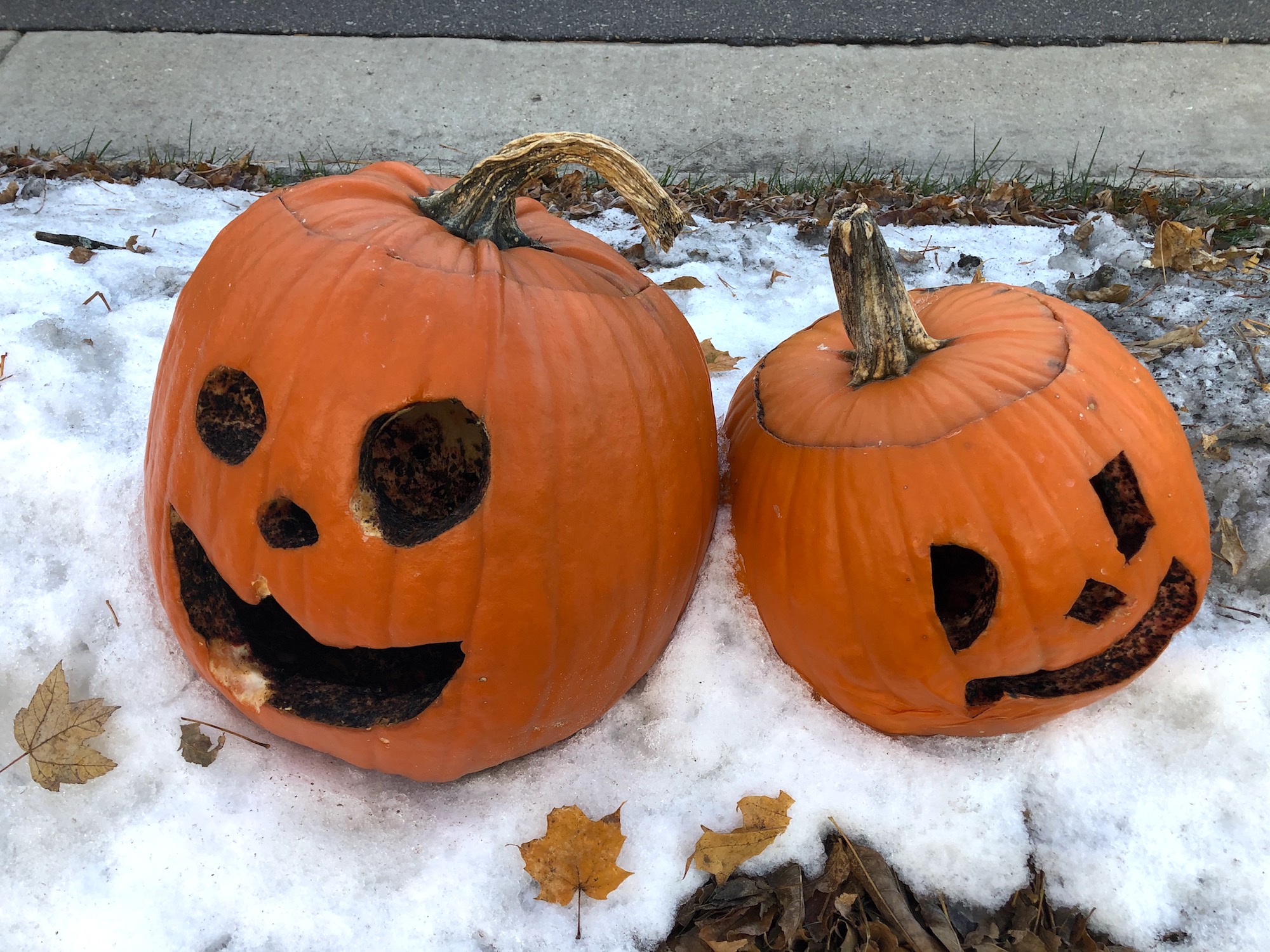 Below: Pumpkins on curb for pick-up.