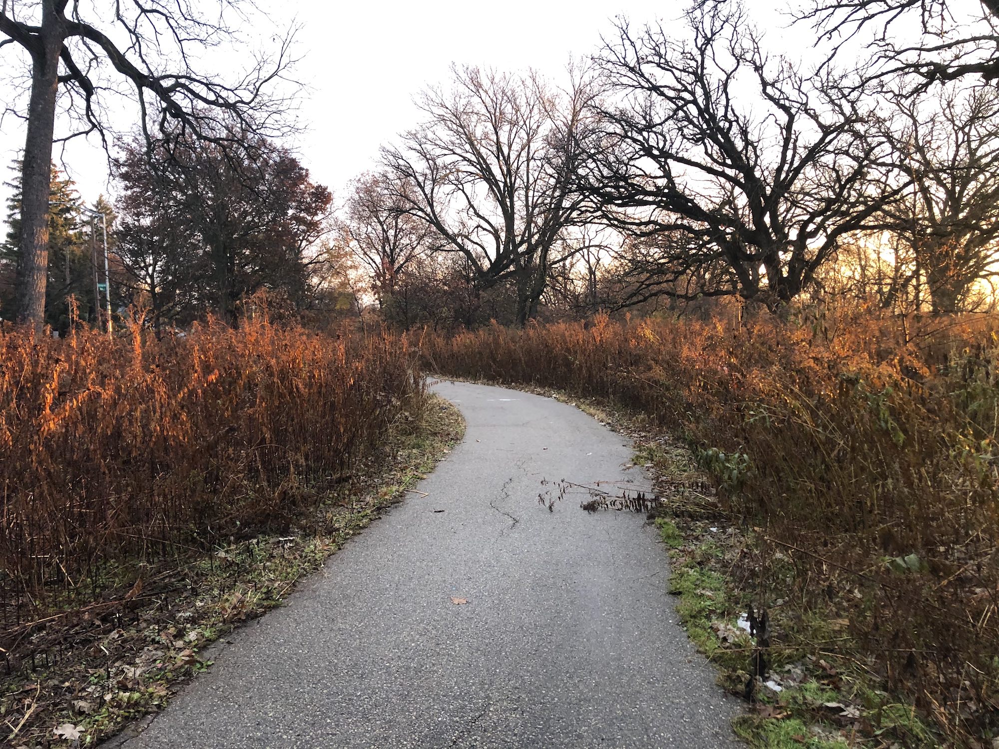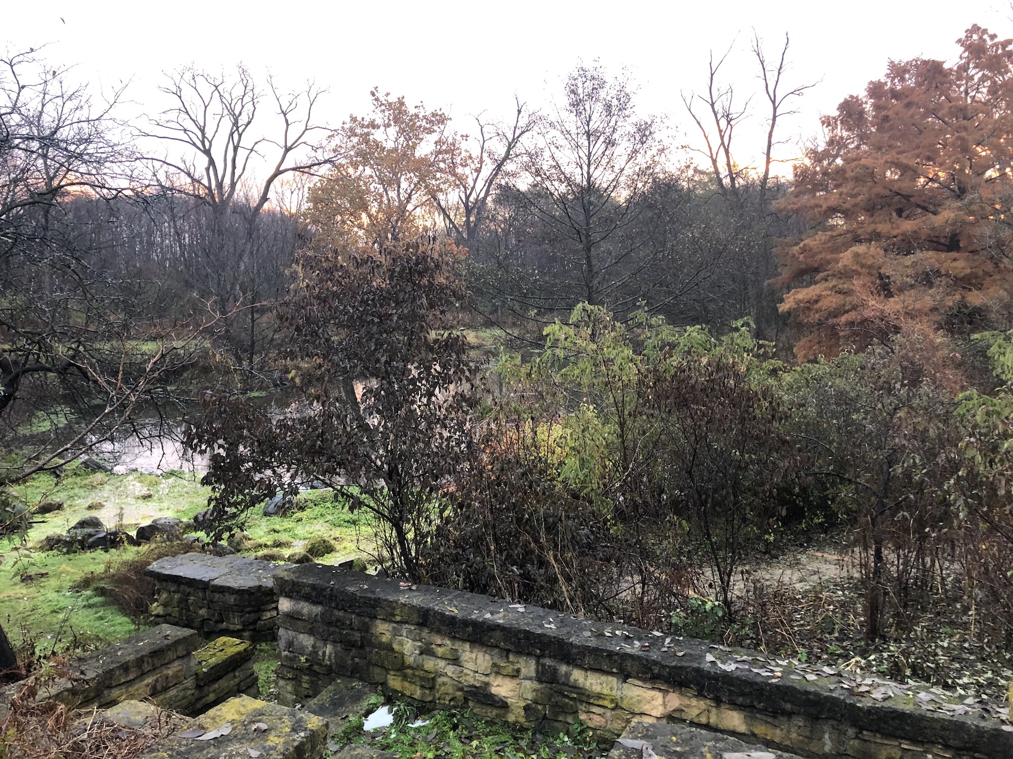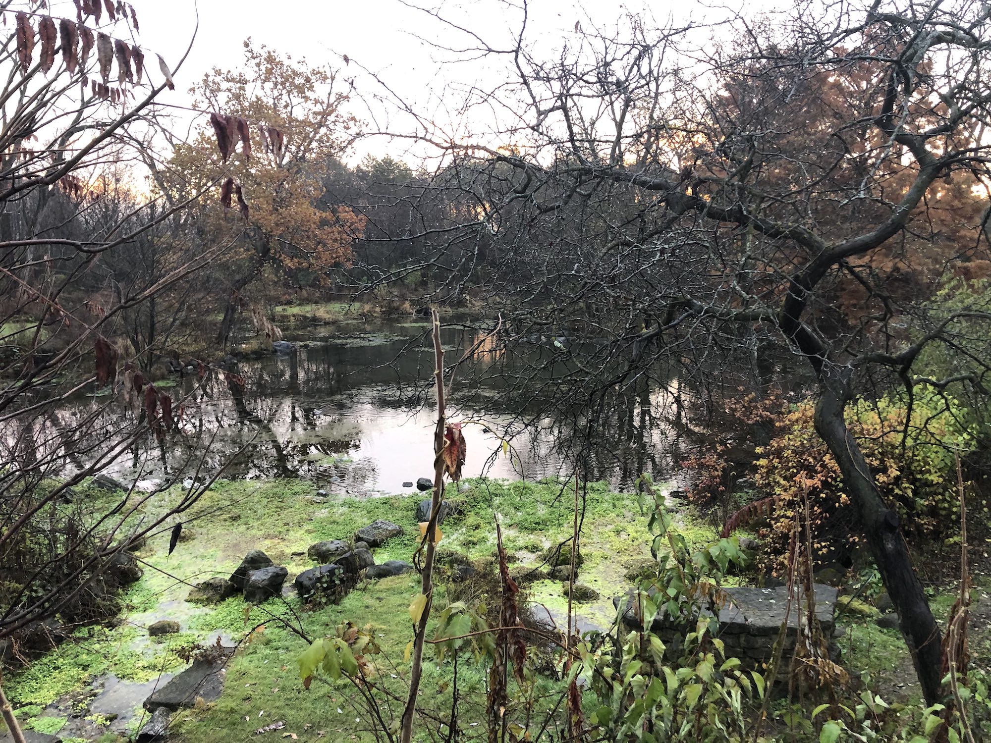 Above: Retaining pond on corner of Nakoma Road and Manitou Way on November 4, 2019 (41°).