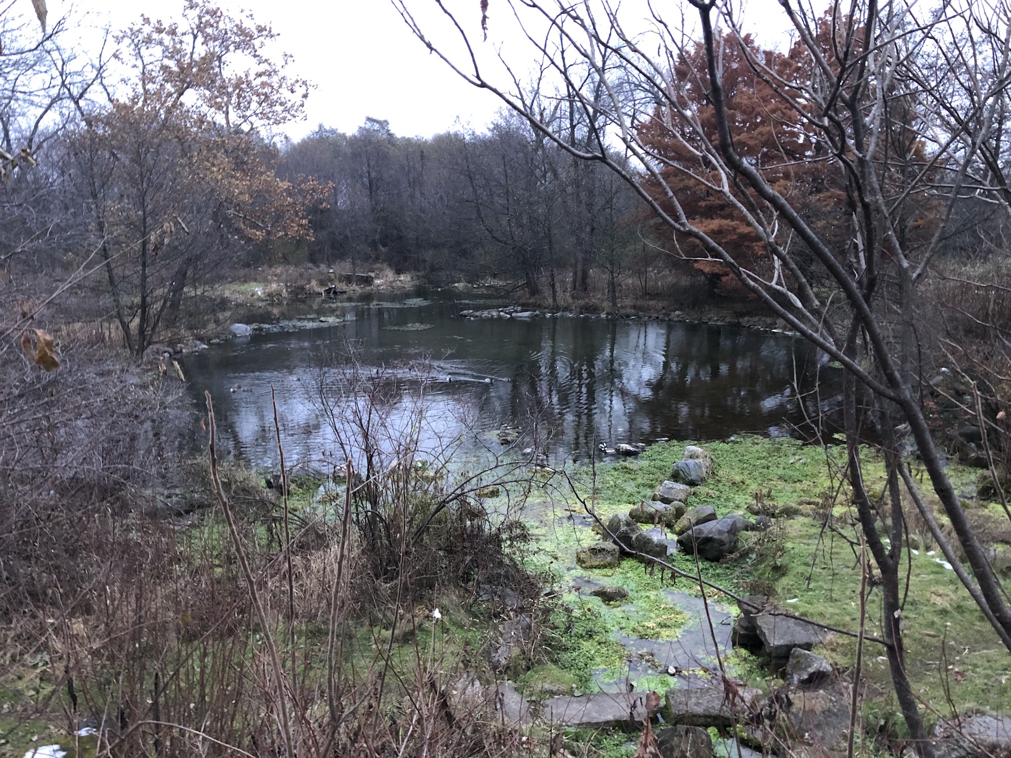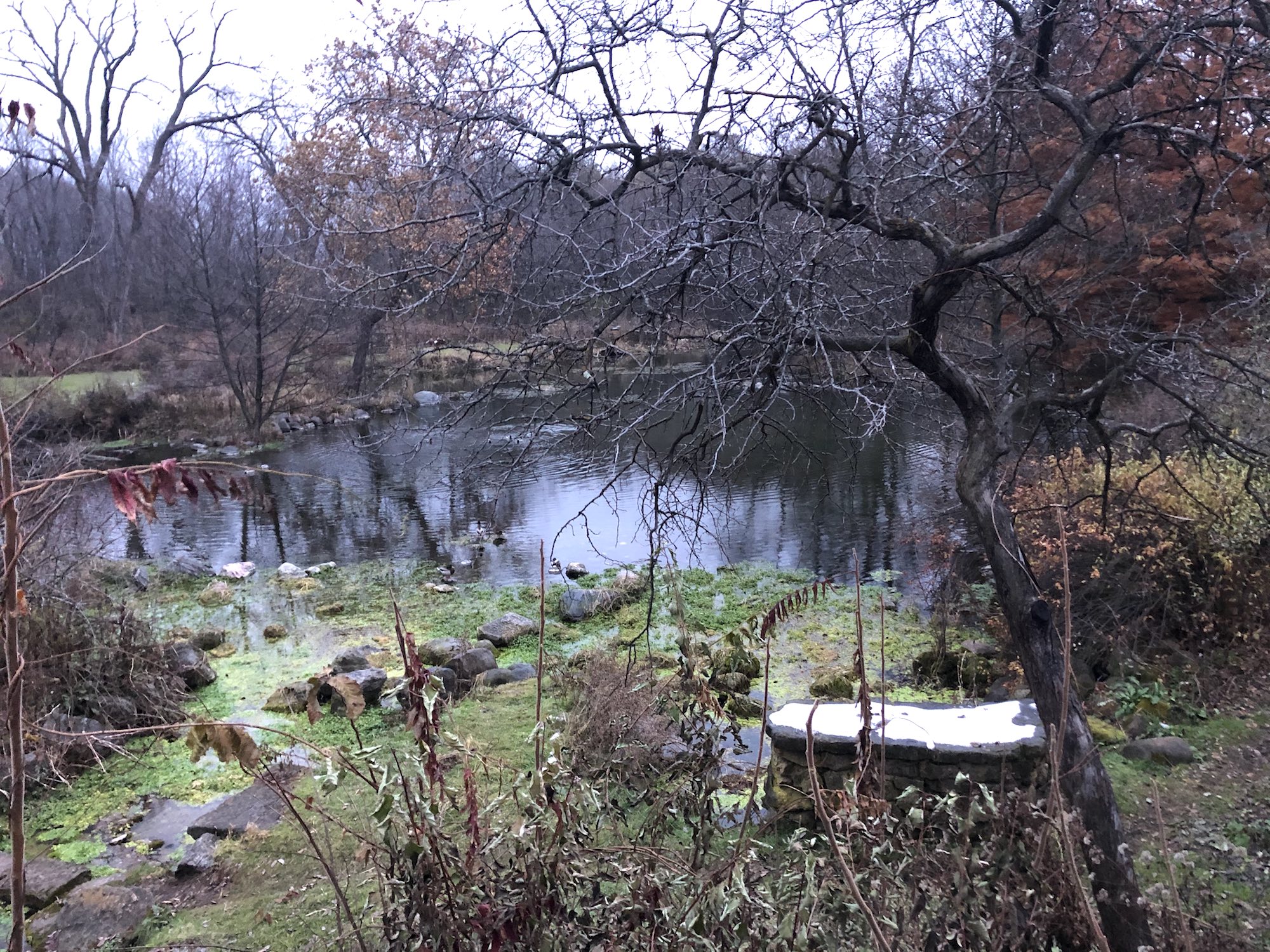 Above: Retaining pond on corner of Nakoma Road and Manitou Way on November 10, 2019 (34°).