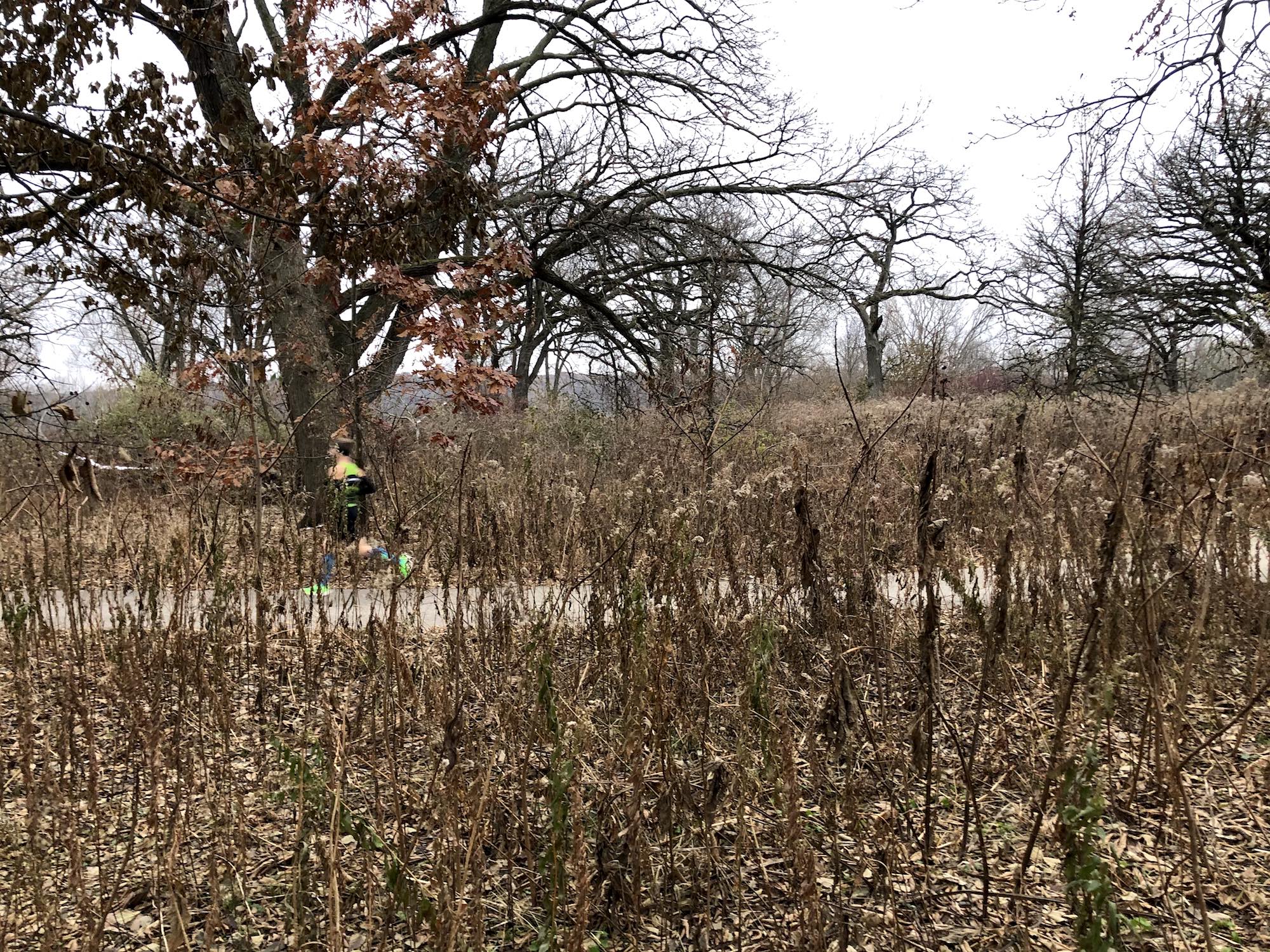 Above: Madison Marathon Runners going by the Arboretum's Viburnum Gardens on November 10, 2019 (34°).