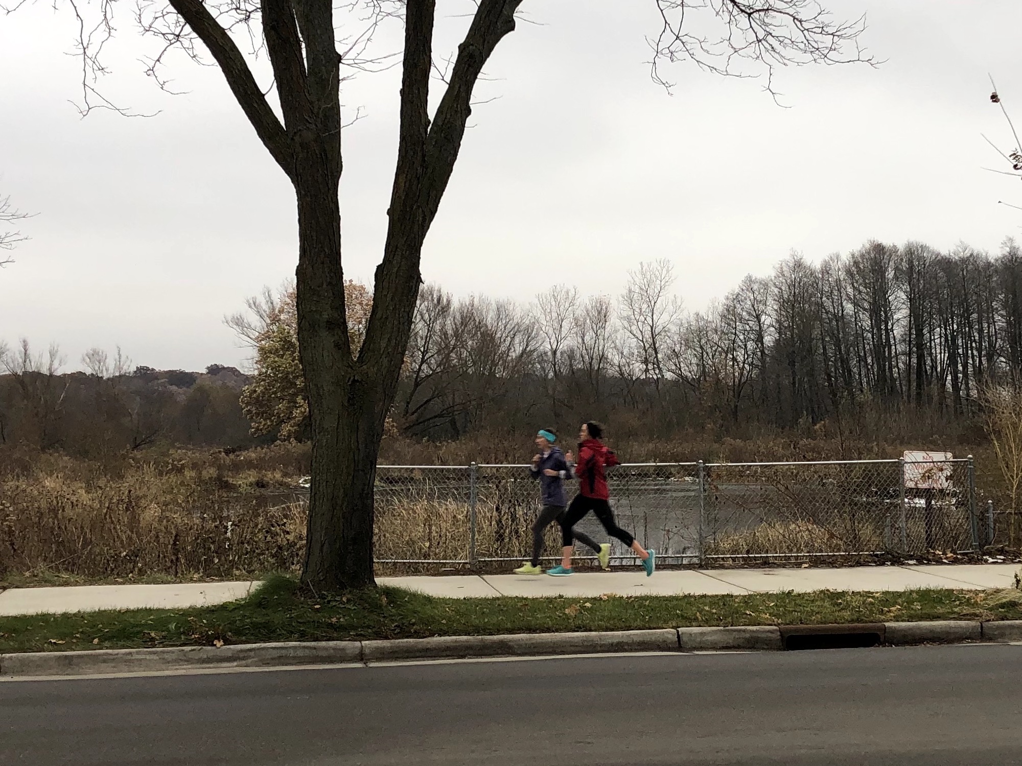 Above: Madison Marathon Runners going by Duck Pond on November 10, 2019 (34°).