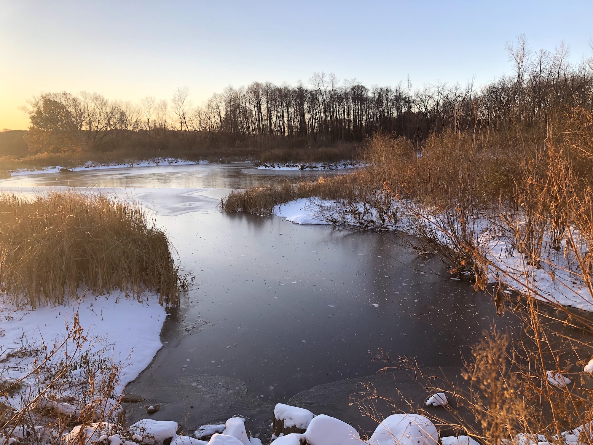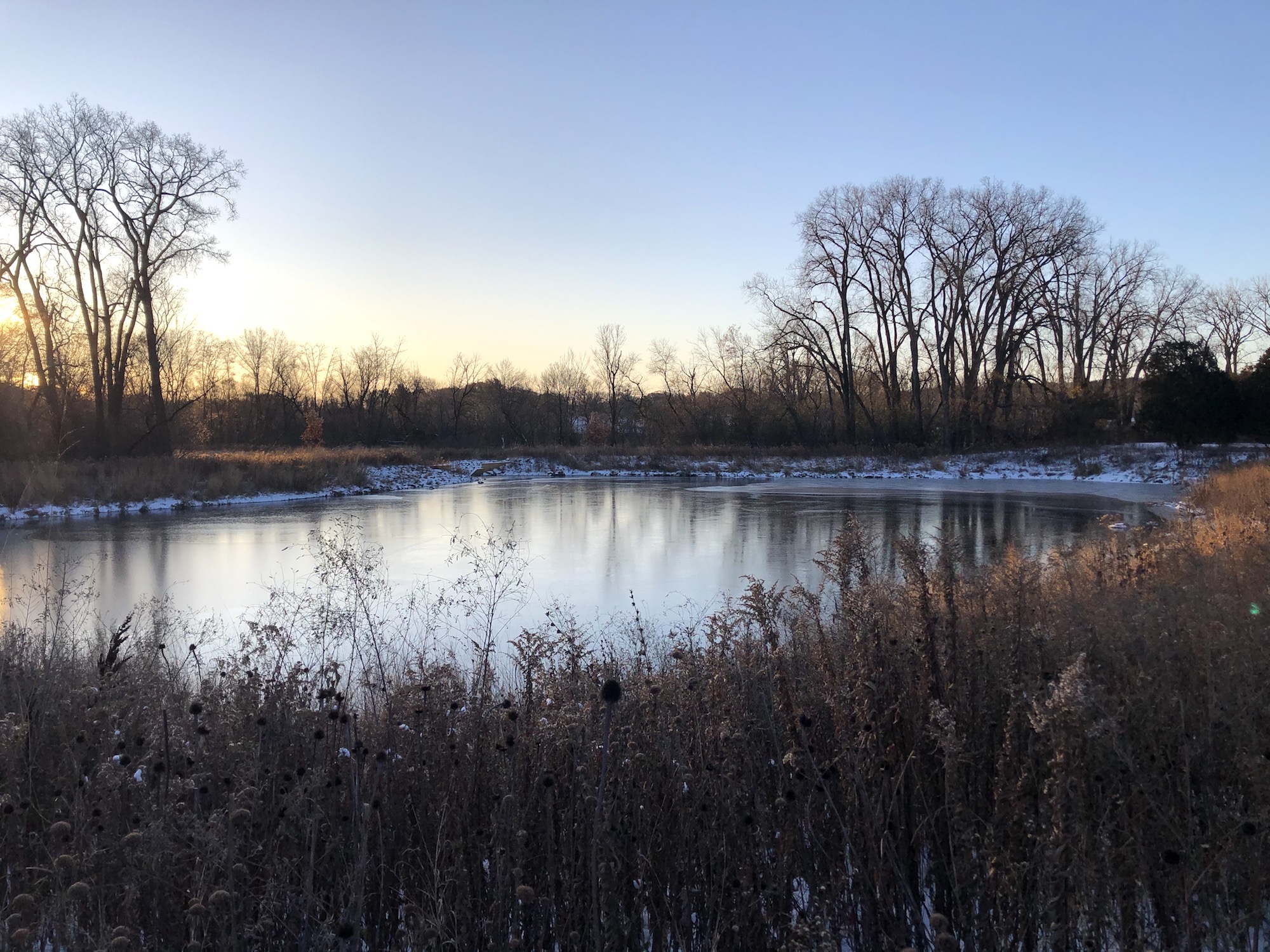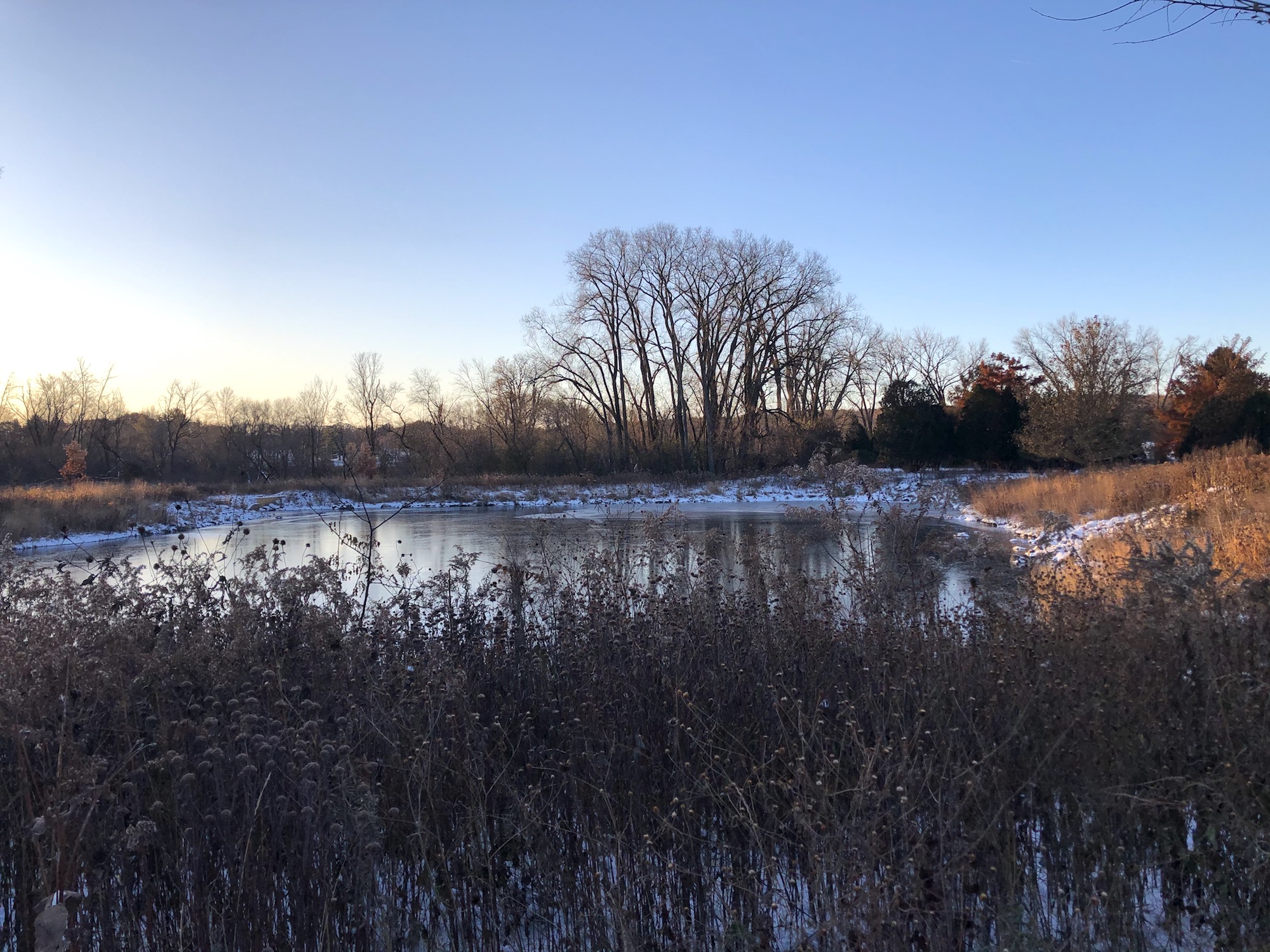 Above: Retaining pond on corner of Nakoma Road and Manitou Way on November 12, 2019 (6°).