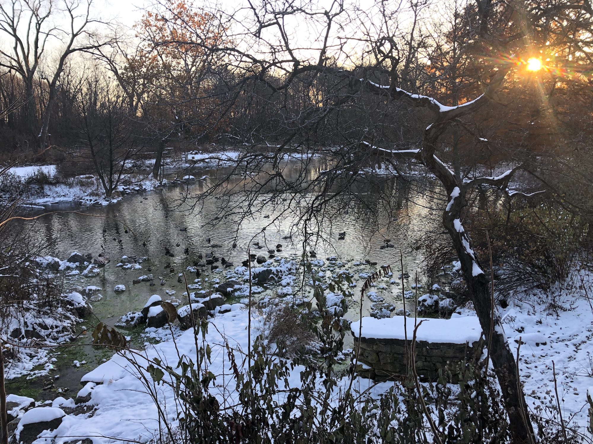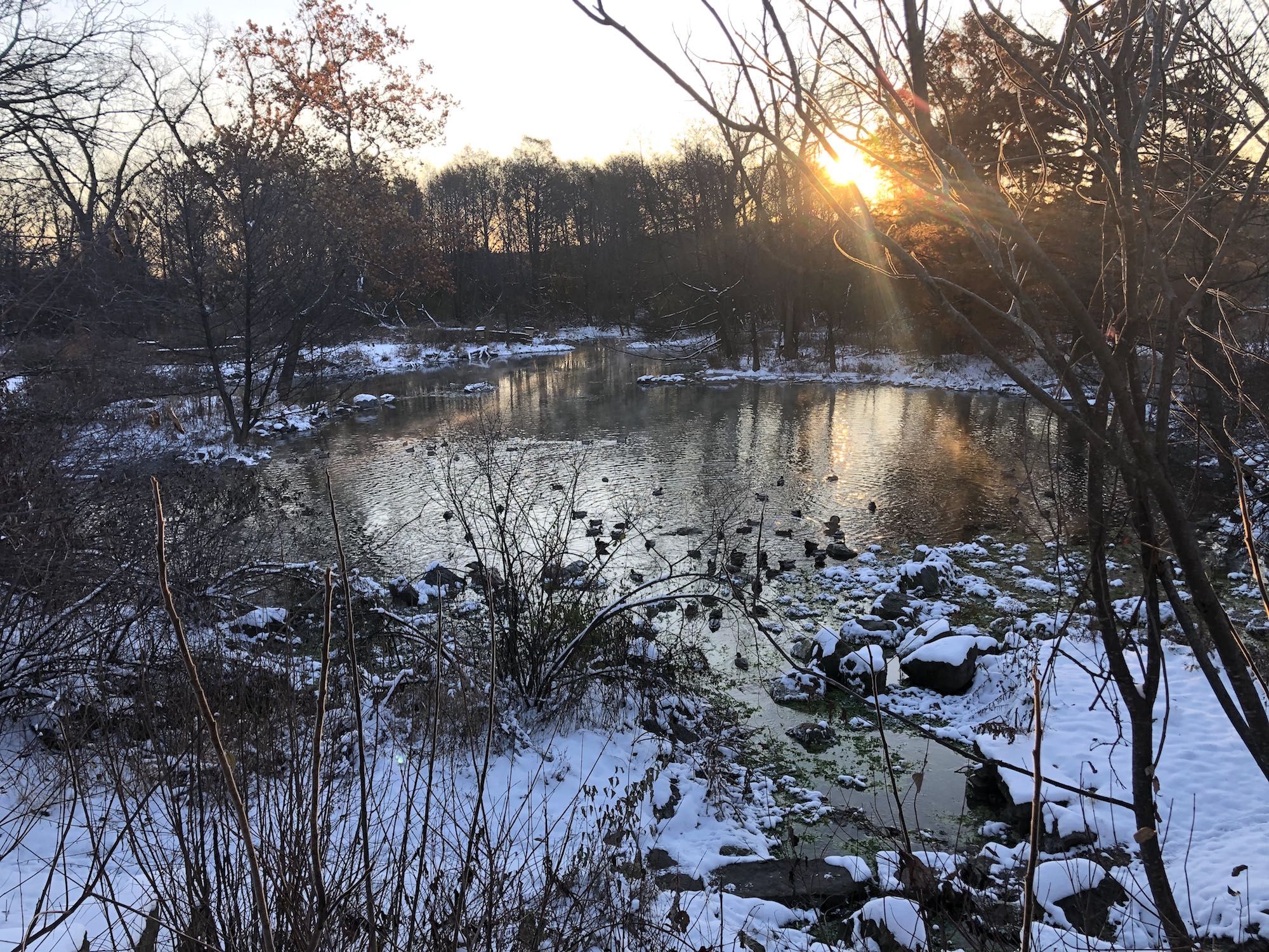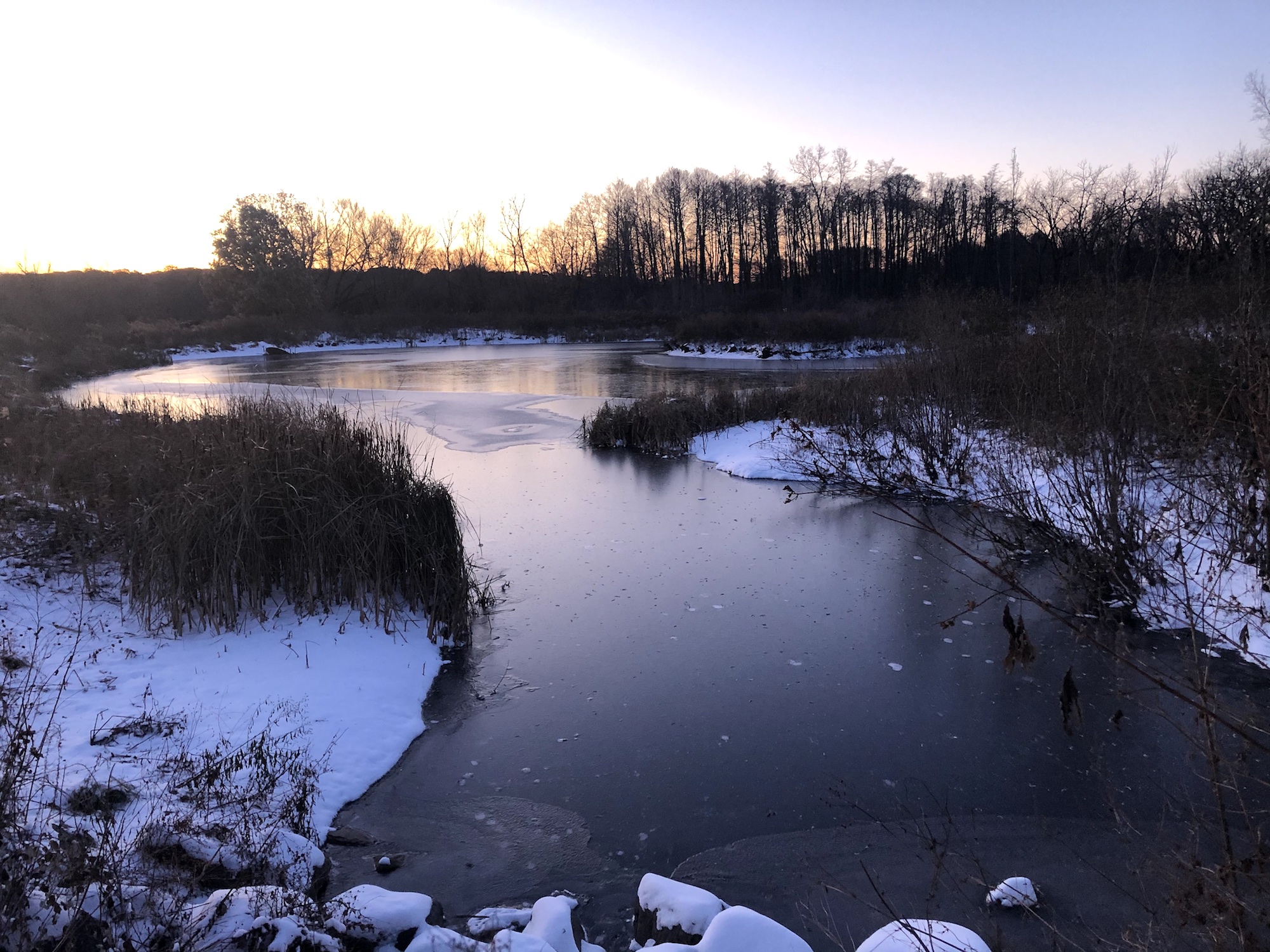 Above: Retaining pond on corner of Nakoma Road and Manitou Way on November 12, 2019 (6°).