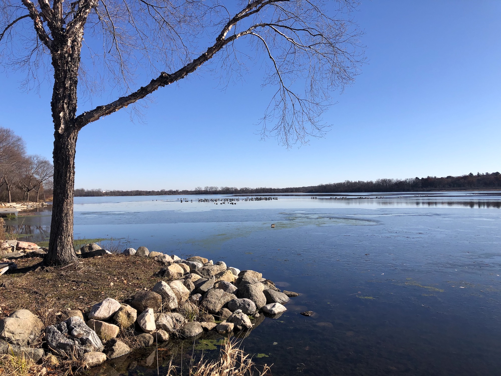 Above: Retaining pond on corner of Nakoma Road and Manitou Way on November 22, 2019 (24°).