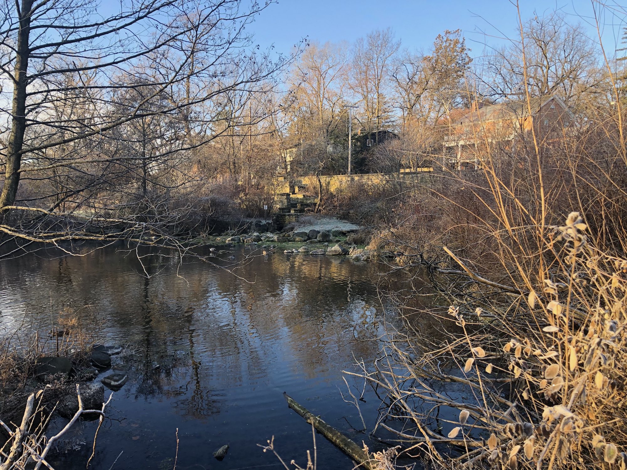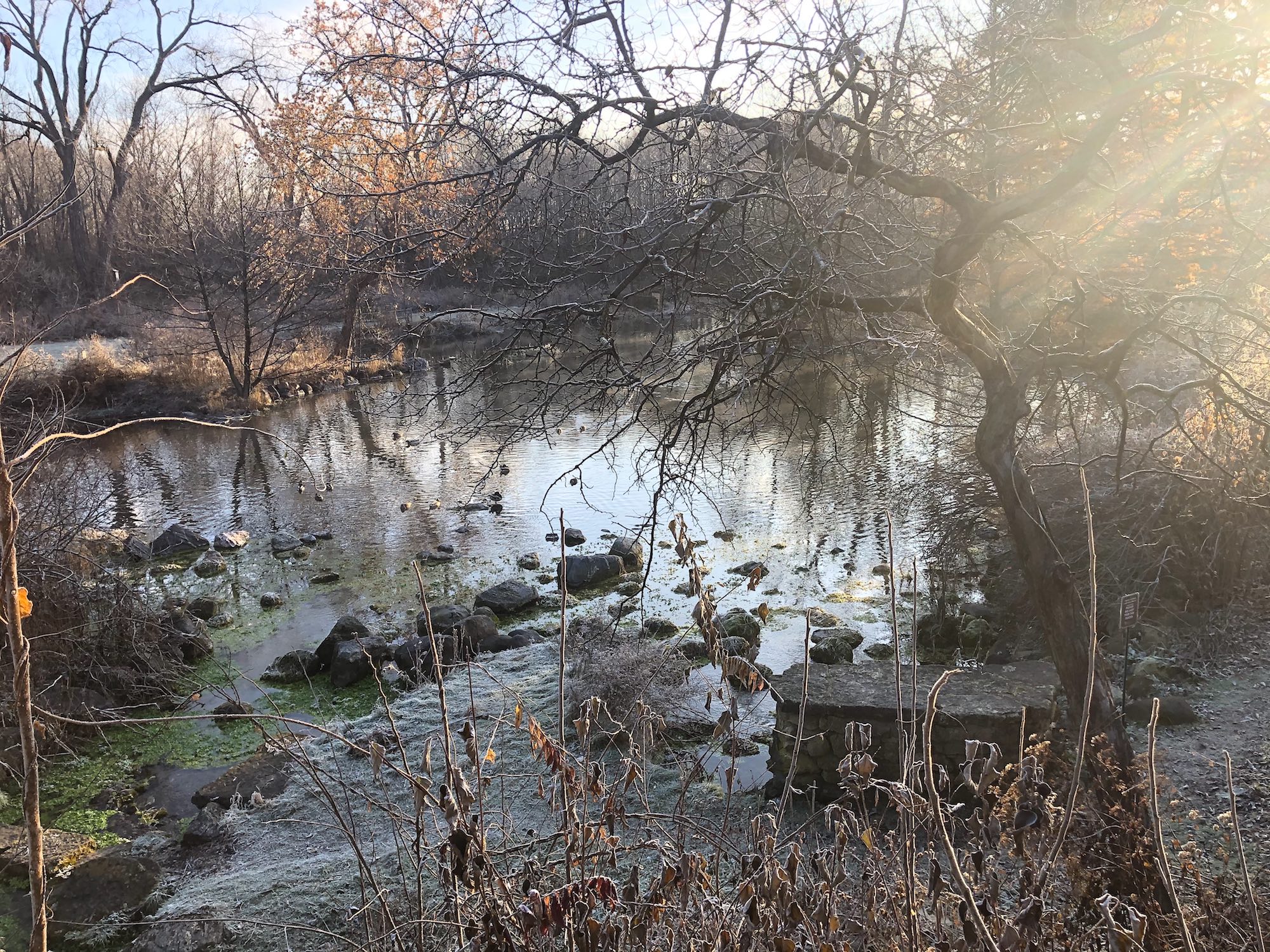 Above: Retaining pond on corner of Nakoma Road and Manitou Way on November 23, 2019 (23°).