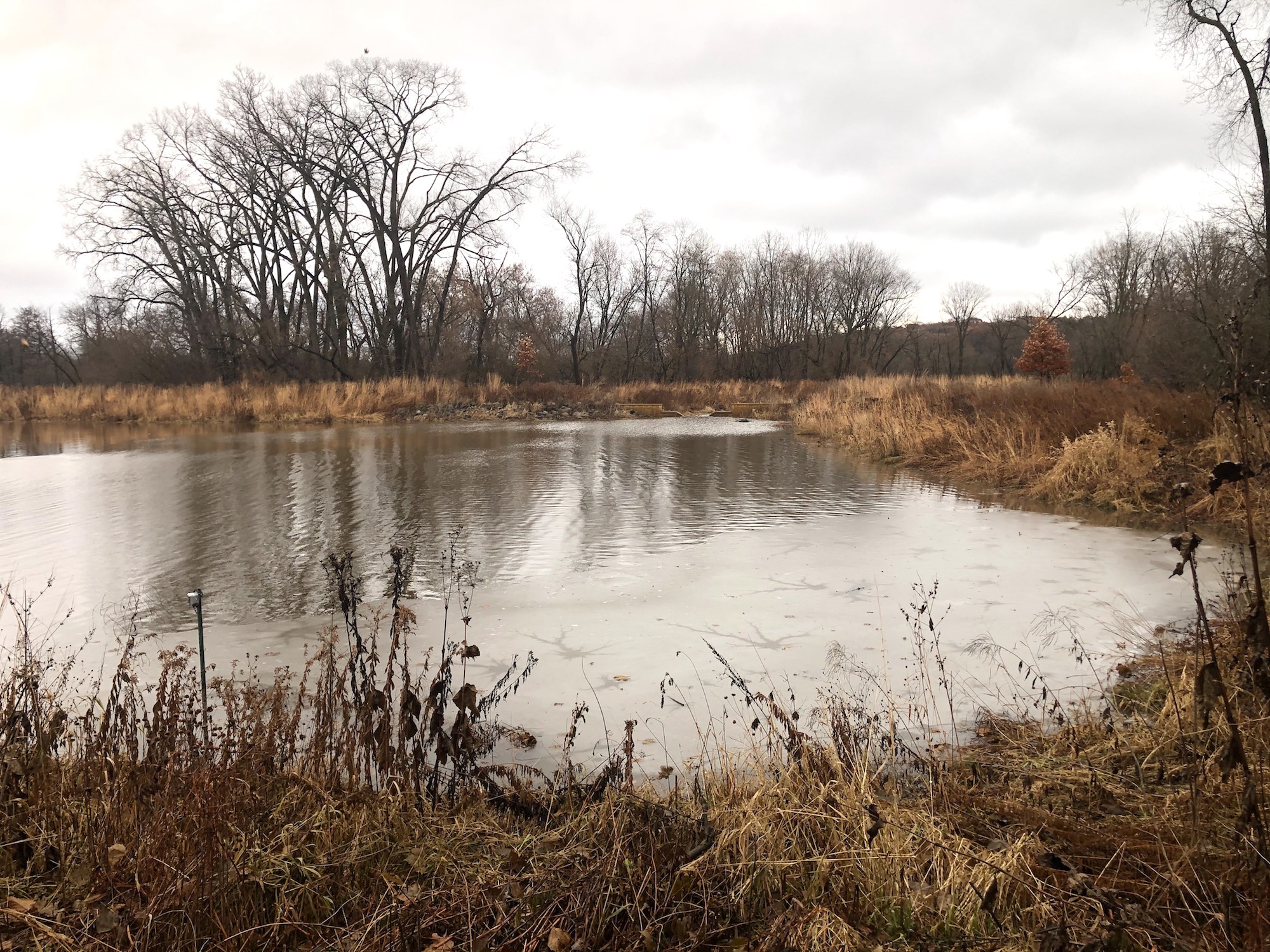 Above: Retaining pond on corner of Nakoma Road and Manitou Way on November 27, 2019 (45°).