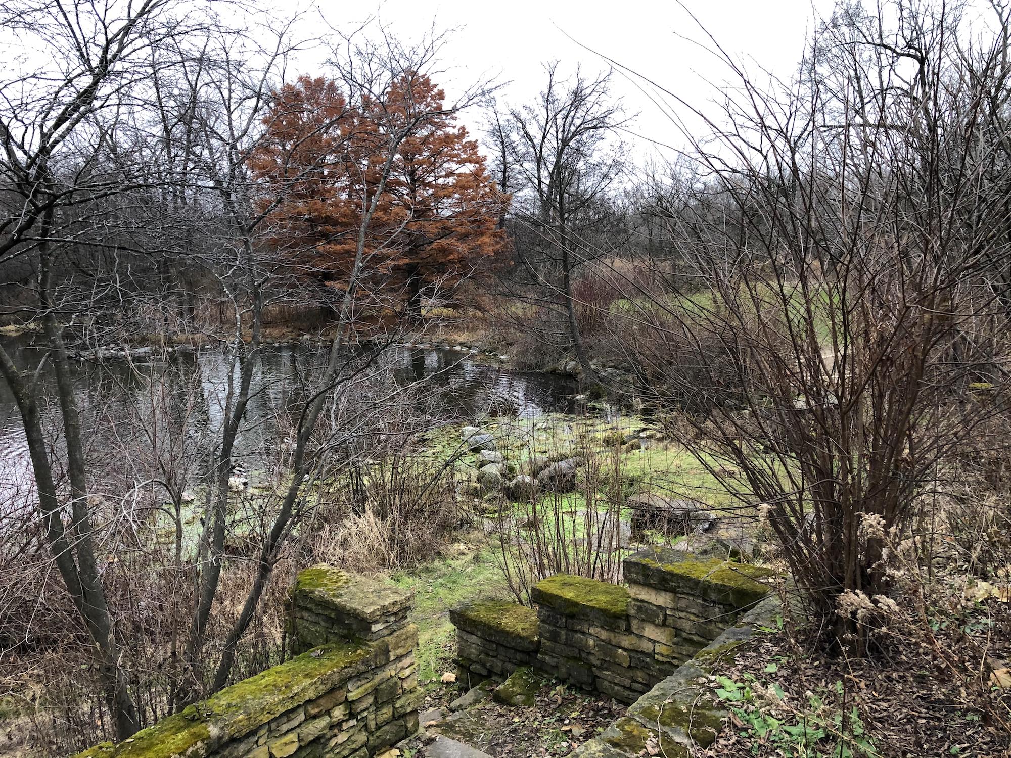Above: Retaining pond on corner of Nakoma Road and Manitou Way on November 28, 2019 (30°).
