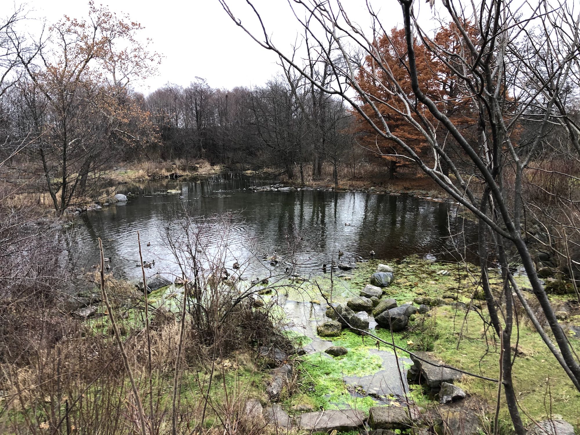Above: Duck Pond on November 28, 2019 (30°). Mallards.