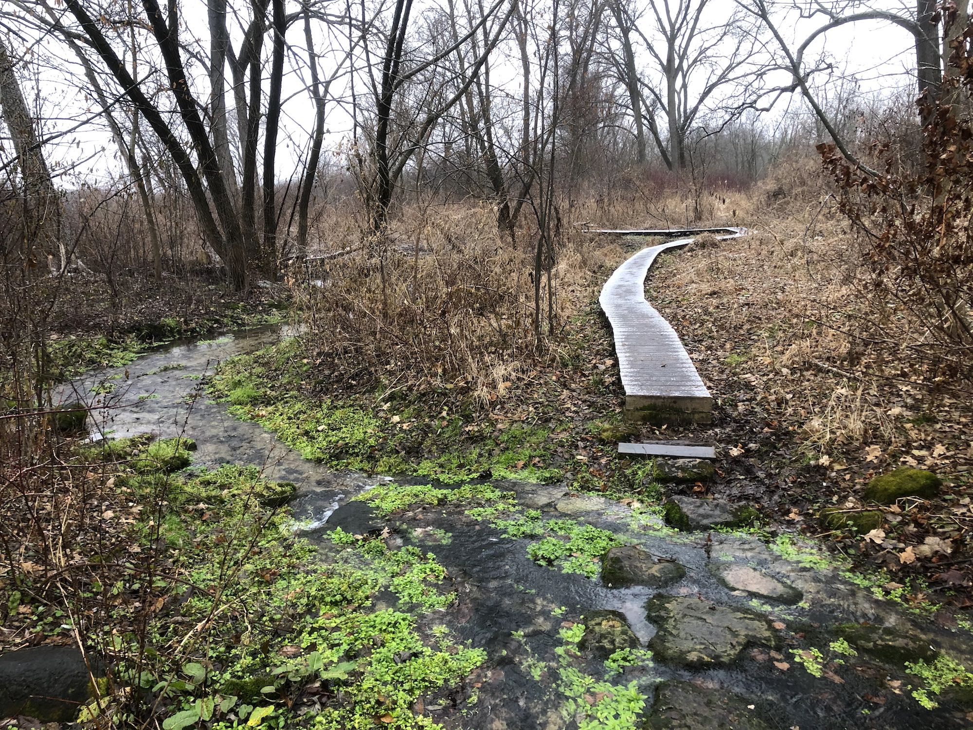 Above: Retaining pond on corner of Nakoma Road and Manitou Way on November 29, 2019 (30°).