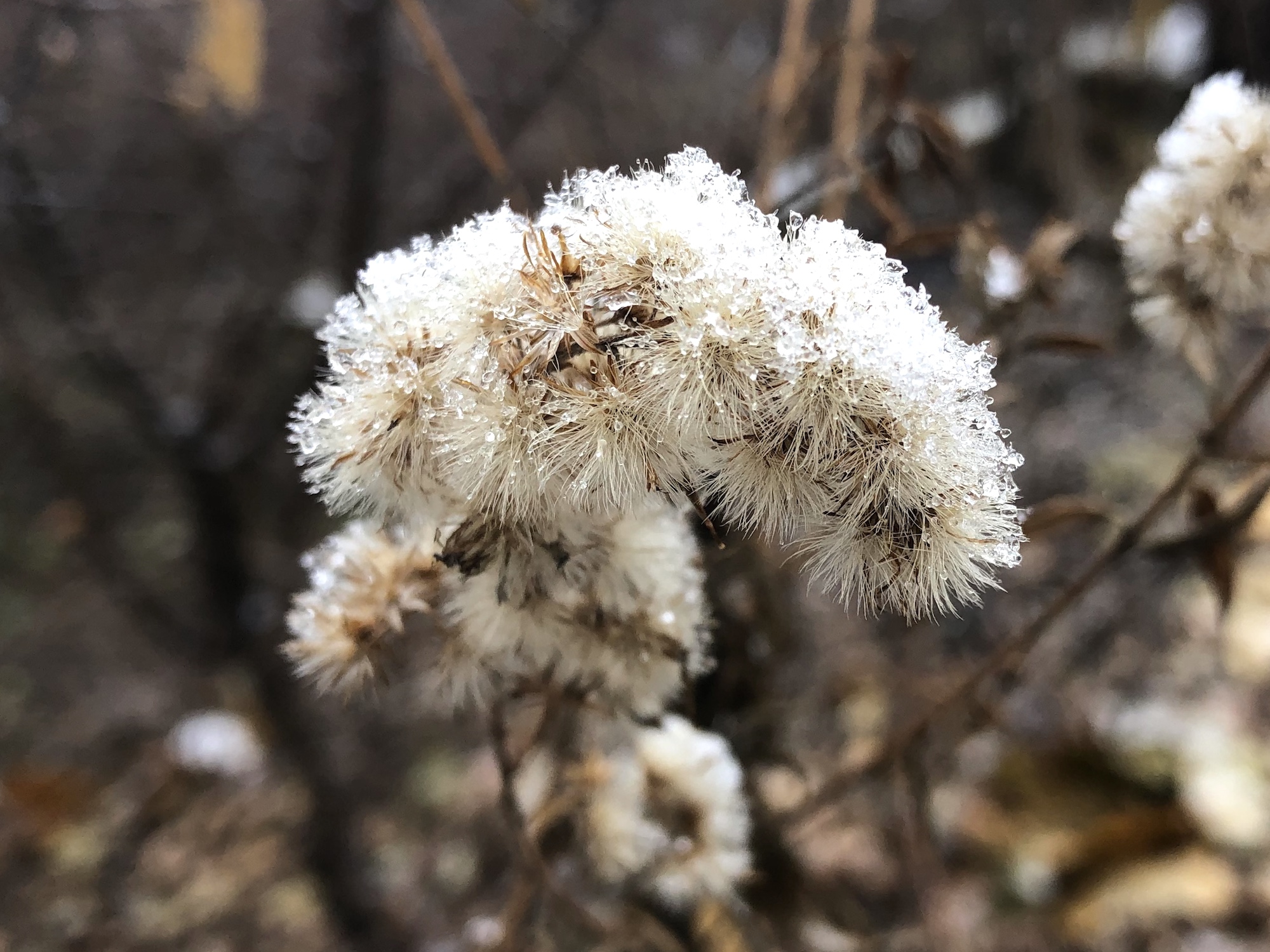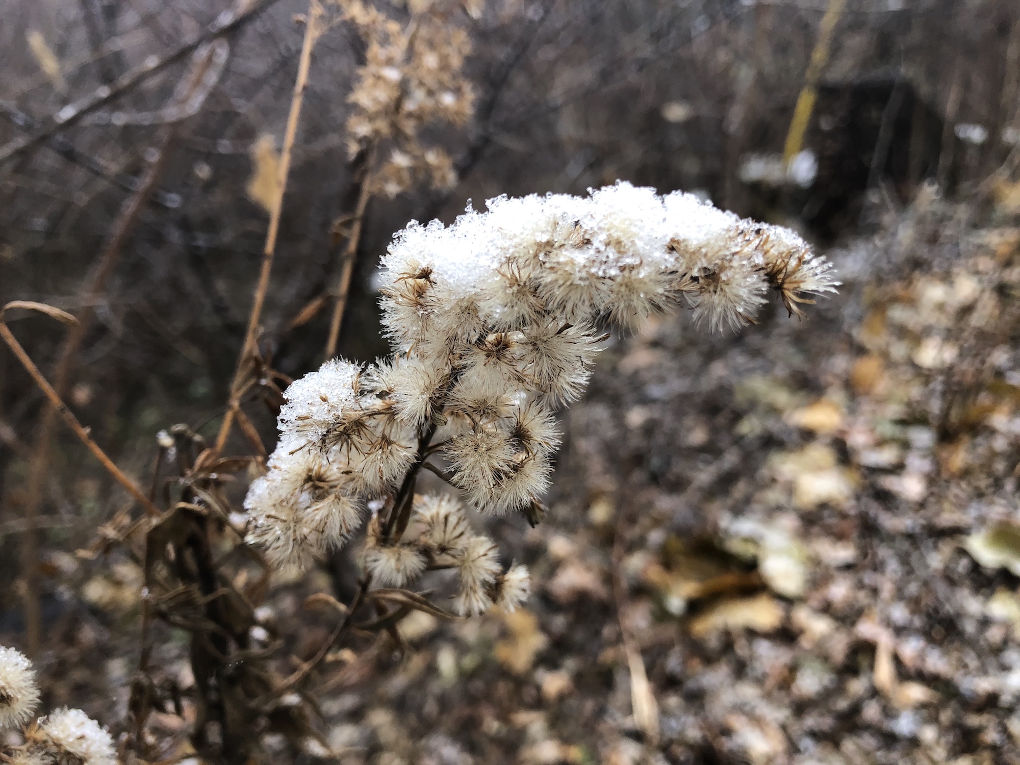 Below: Goldenrod seed fluff holding on near Duck Pond.