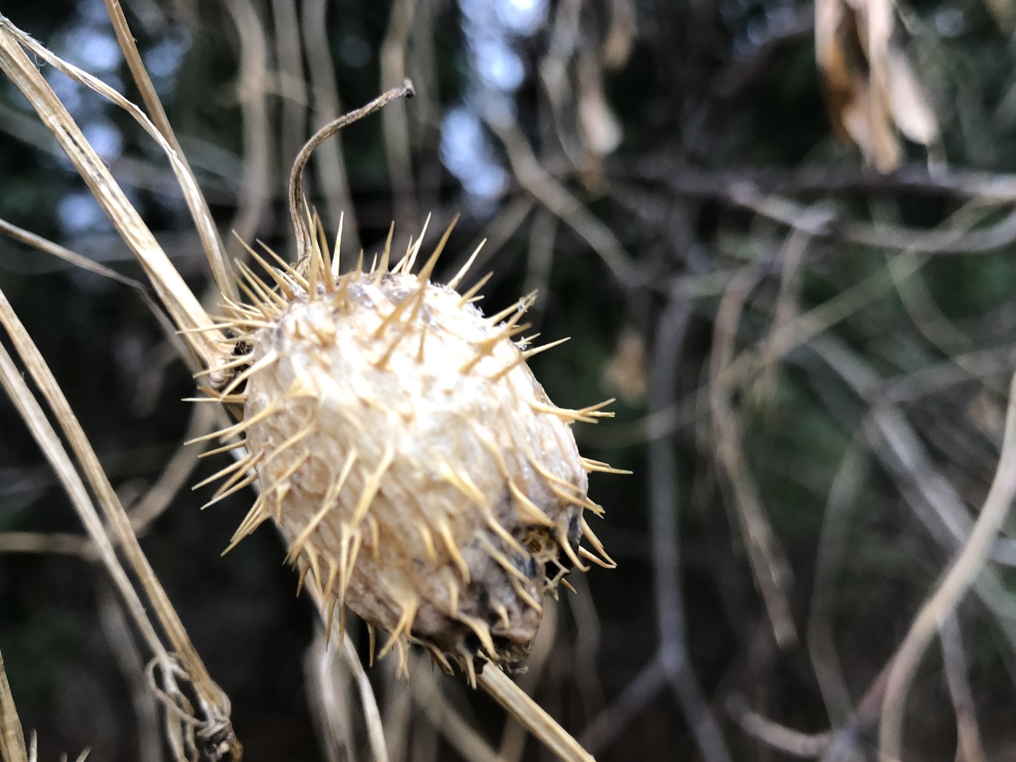 Below: Wild Cucumber fruit pod shell at edge of woods on Arbor Drive near Sycamore Tree.