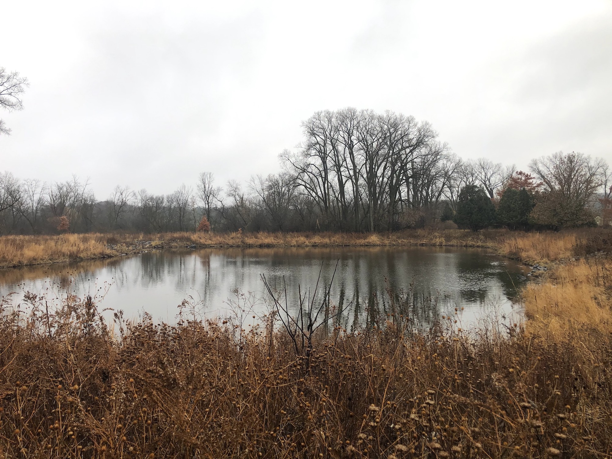 Above: Retaining pond on corner of Nakoma Road and Manitou Way on November 30, 2019 (35°).