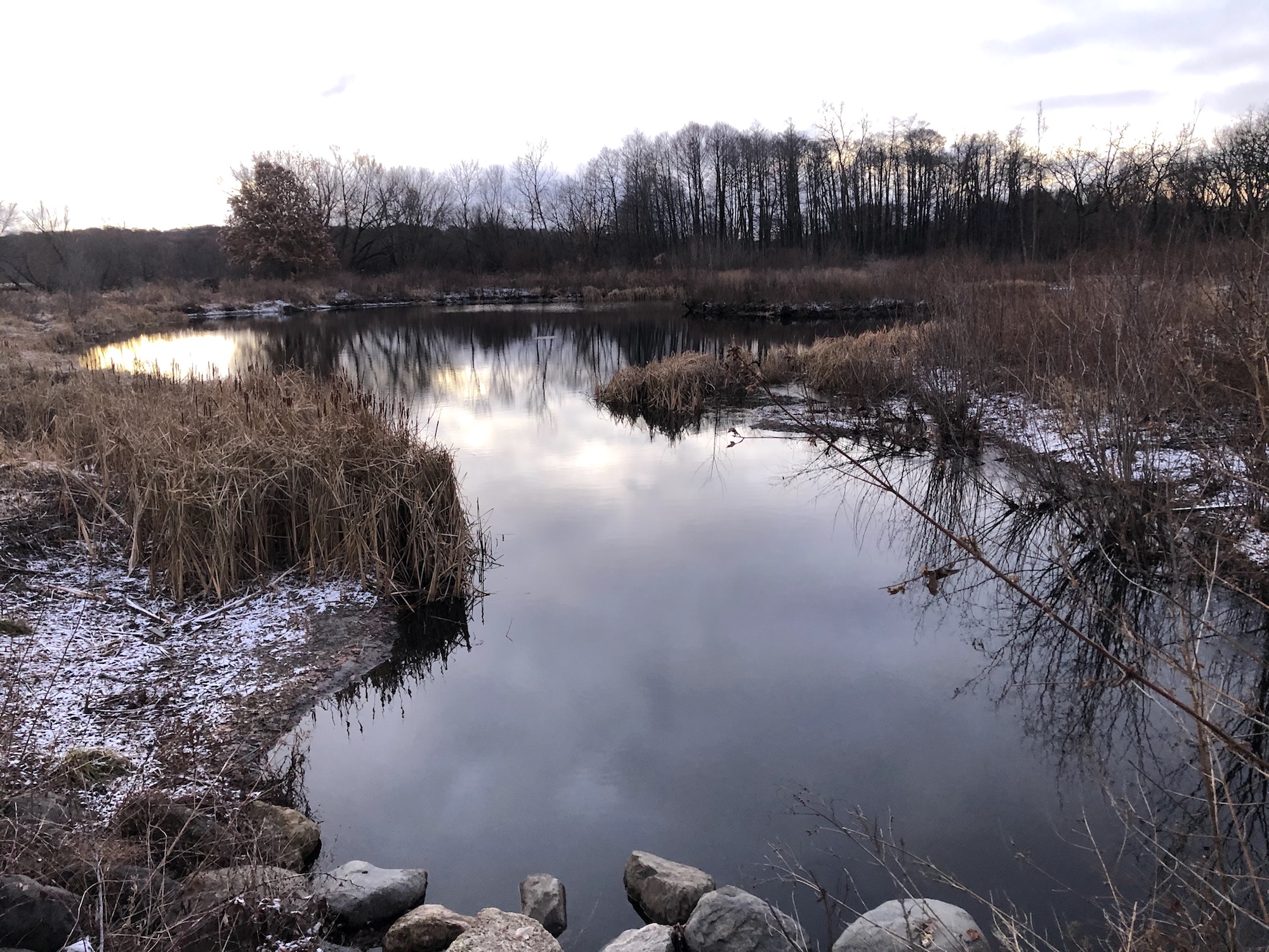 Above: Marion-Dunn Retaining Pond on December 2, 2019. (27°).