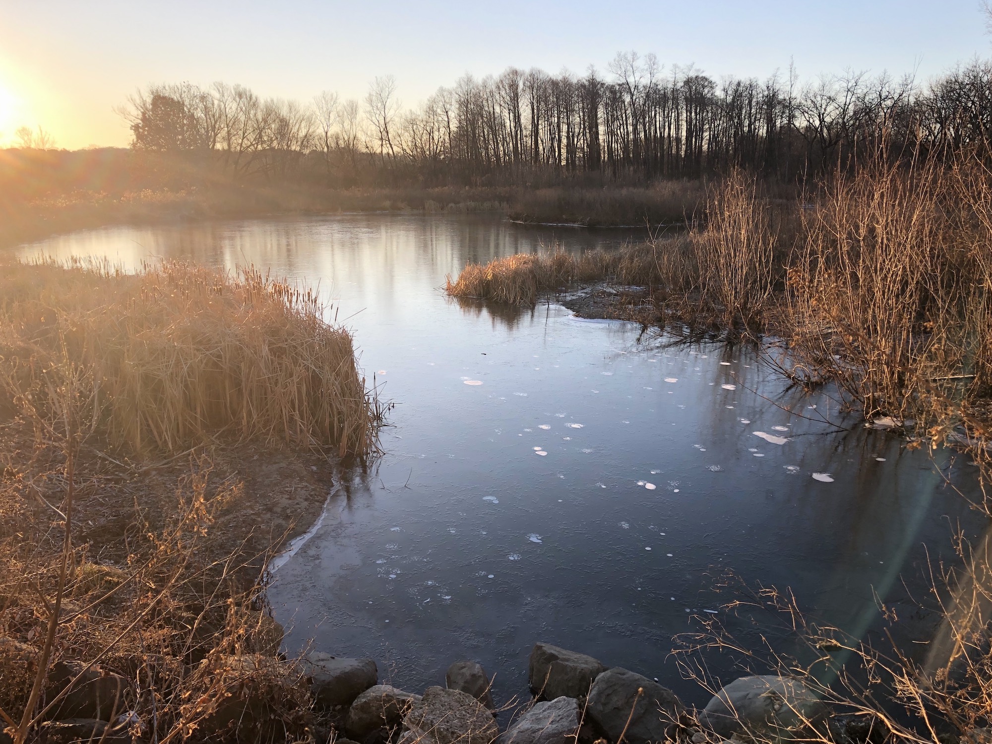 Above: Marion-Dunn Retaining Pond on December 4, 2019. (31°).