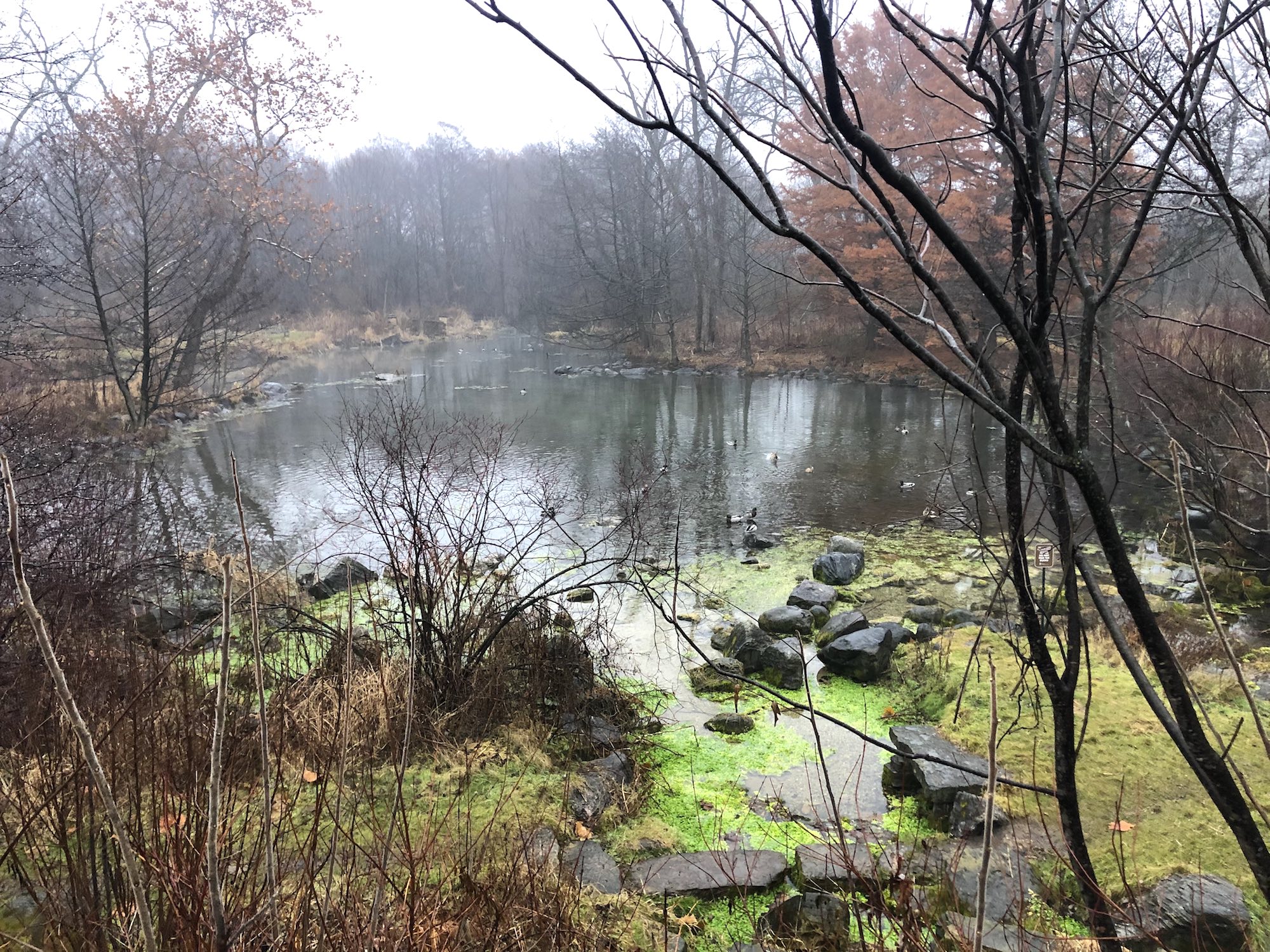 Above: Duck Pond on December 9, 2019 (37°). Mallards.
