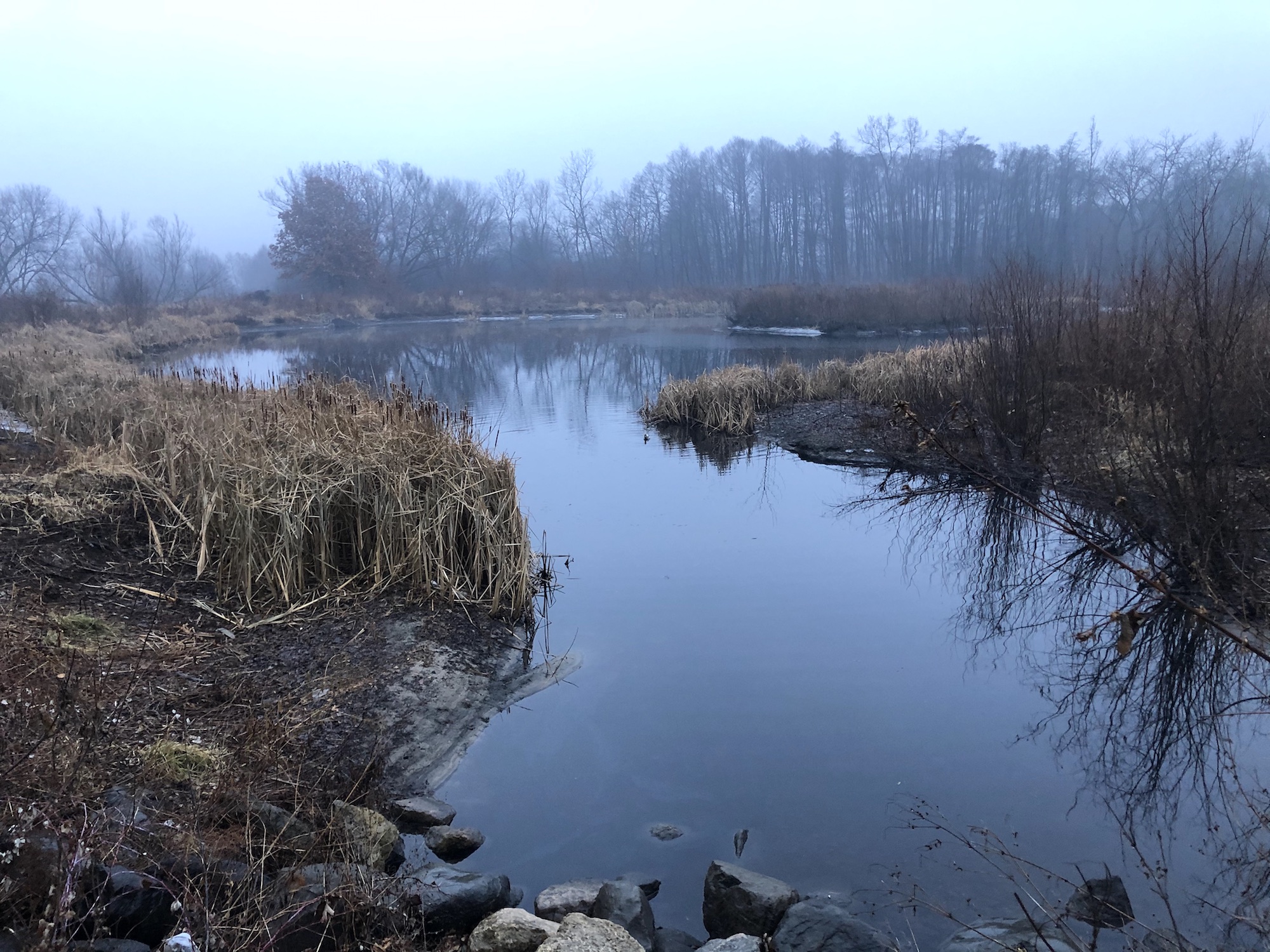 Above: Marion-Dunn Retaining Pond on December 9, 2019. (37°).