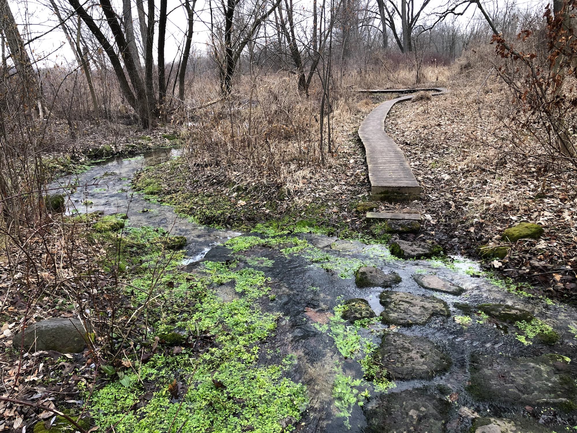 Above: Retaining pond on corner of Nakoma Road and Manitou Way on December 14, 2019 (26°).