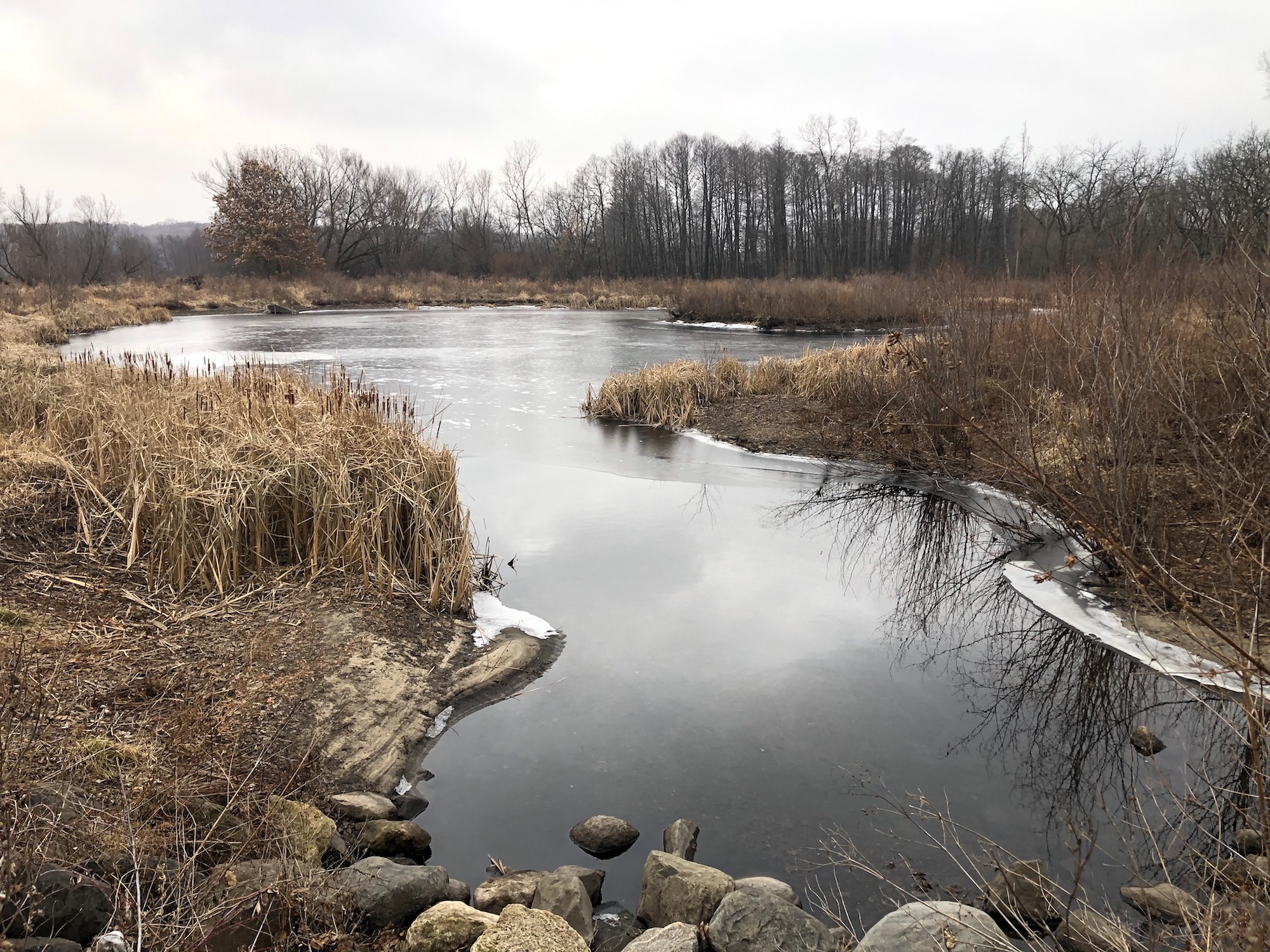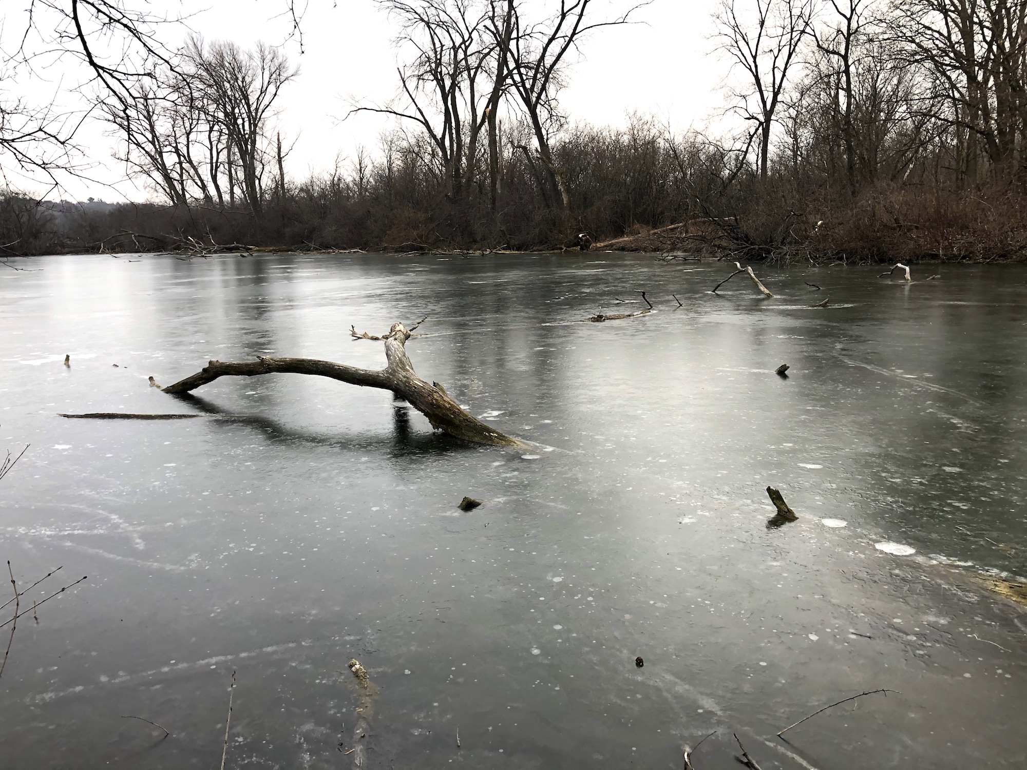 Above: Marion-Dunn Retaining Pond on December 14, 2019. (26°).