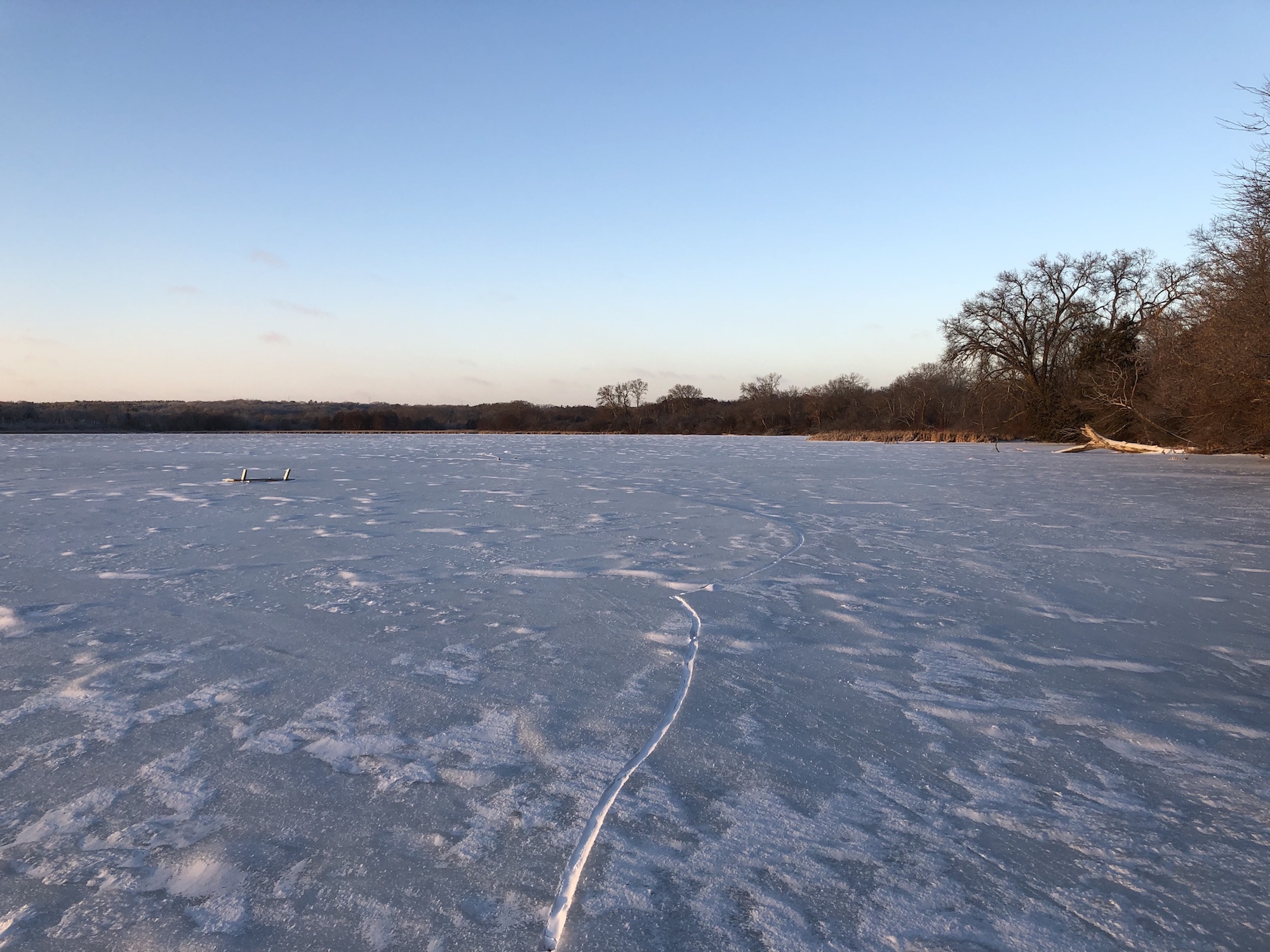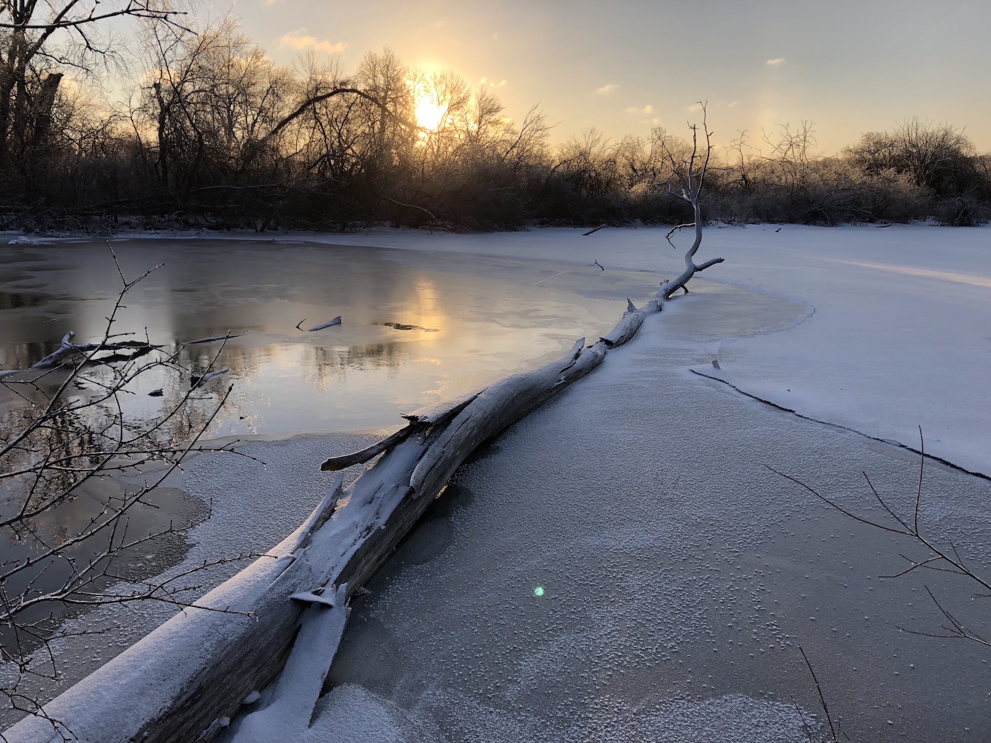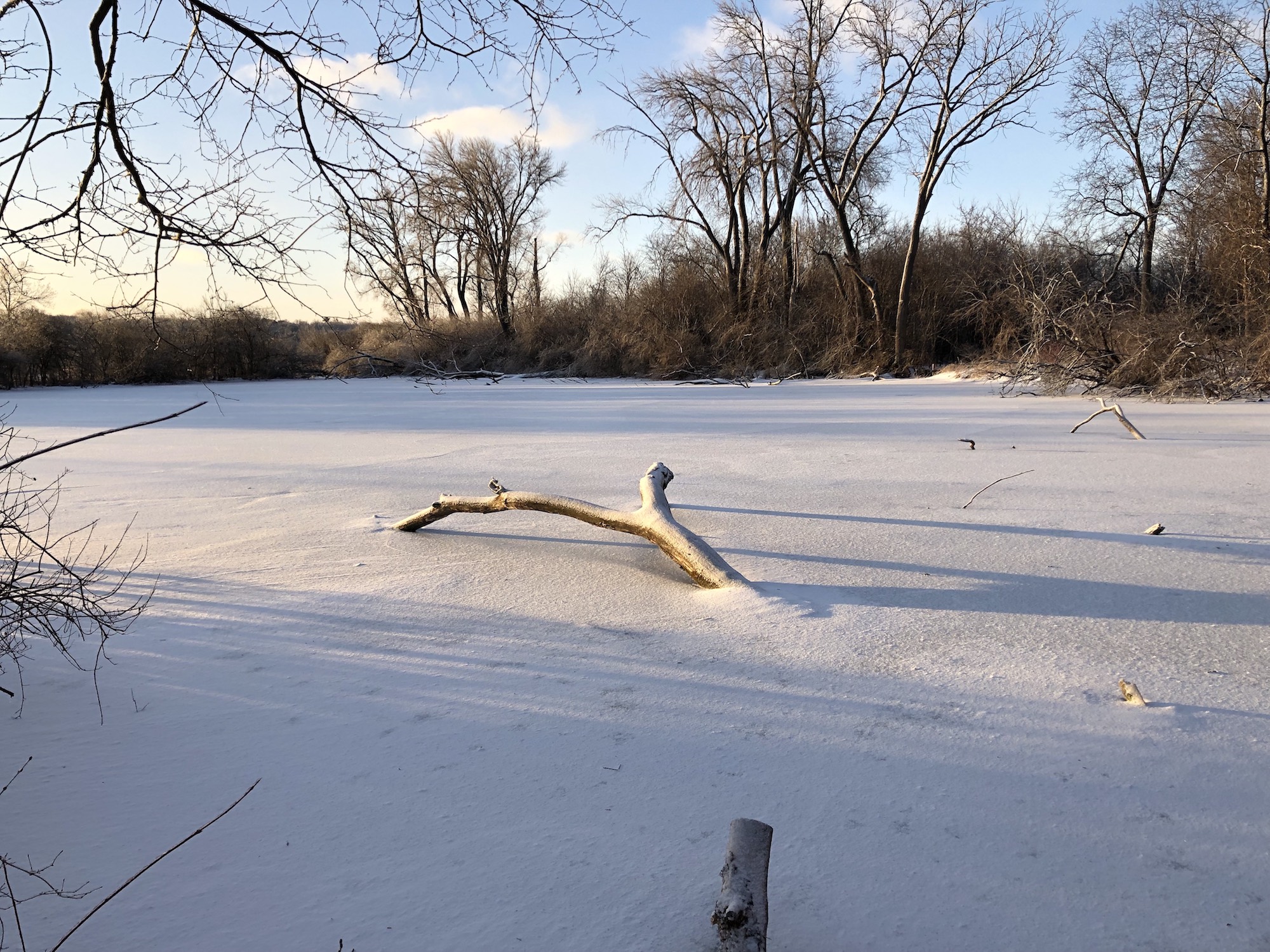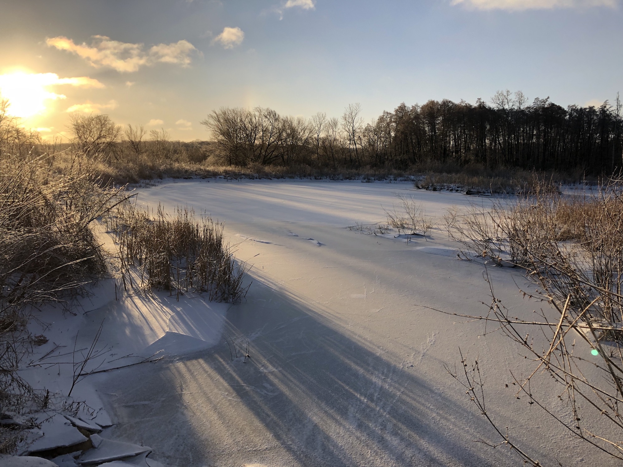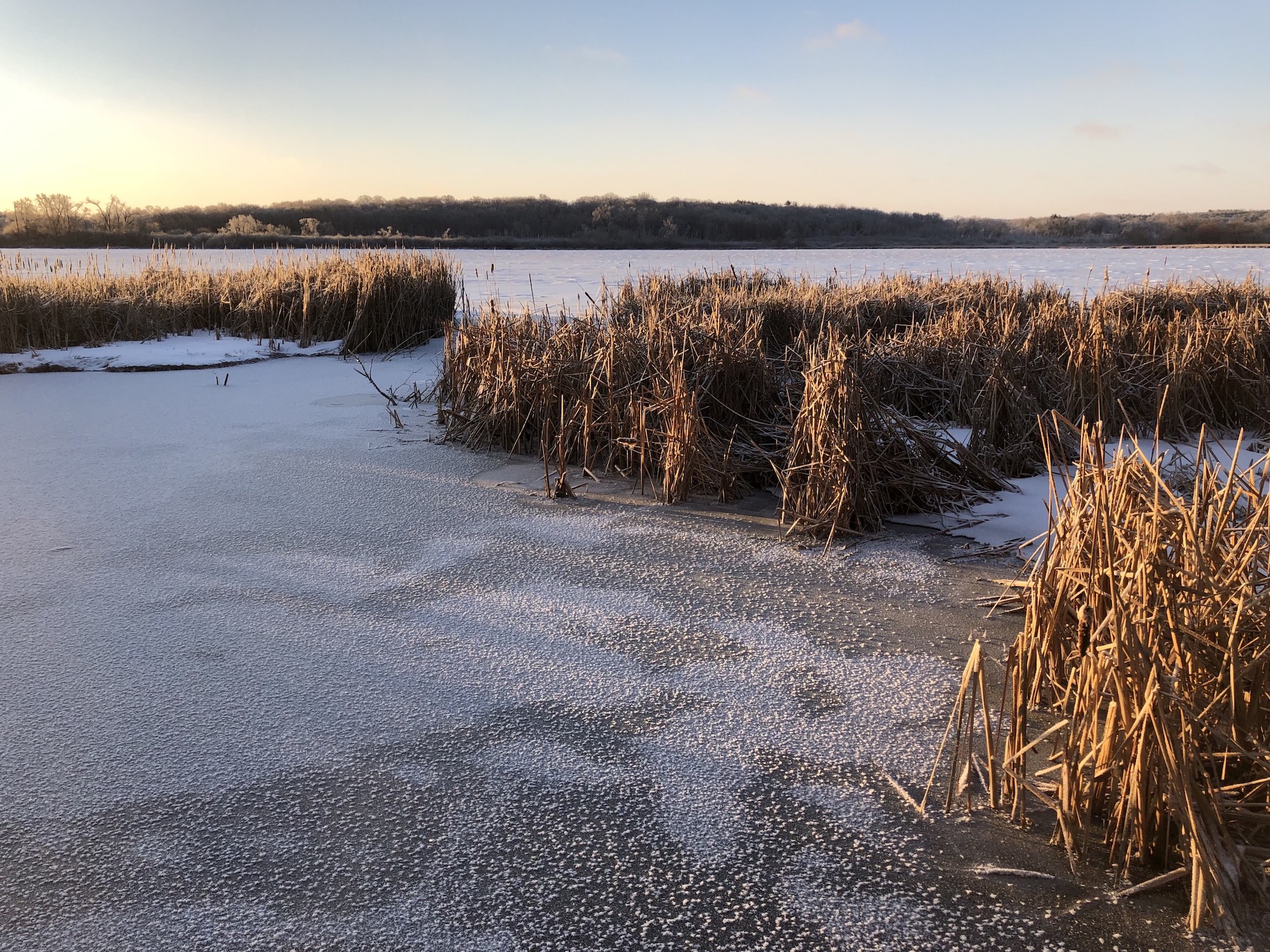 Above: Marion-Dunn retaining pond on February 8, 2019 (-3°).